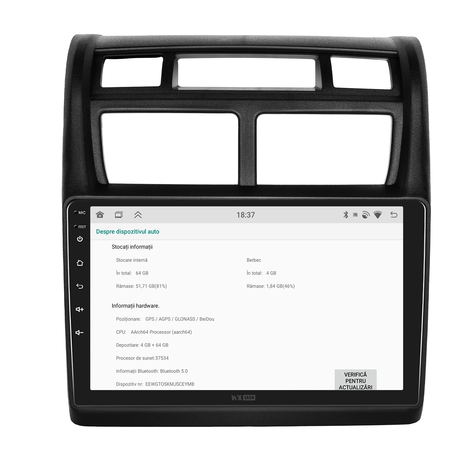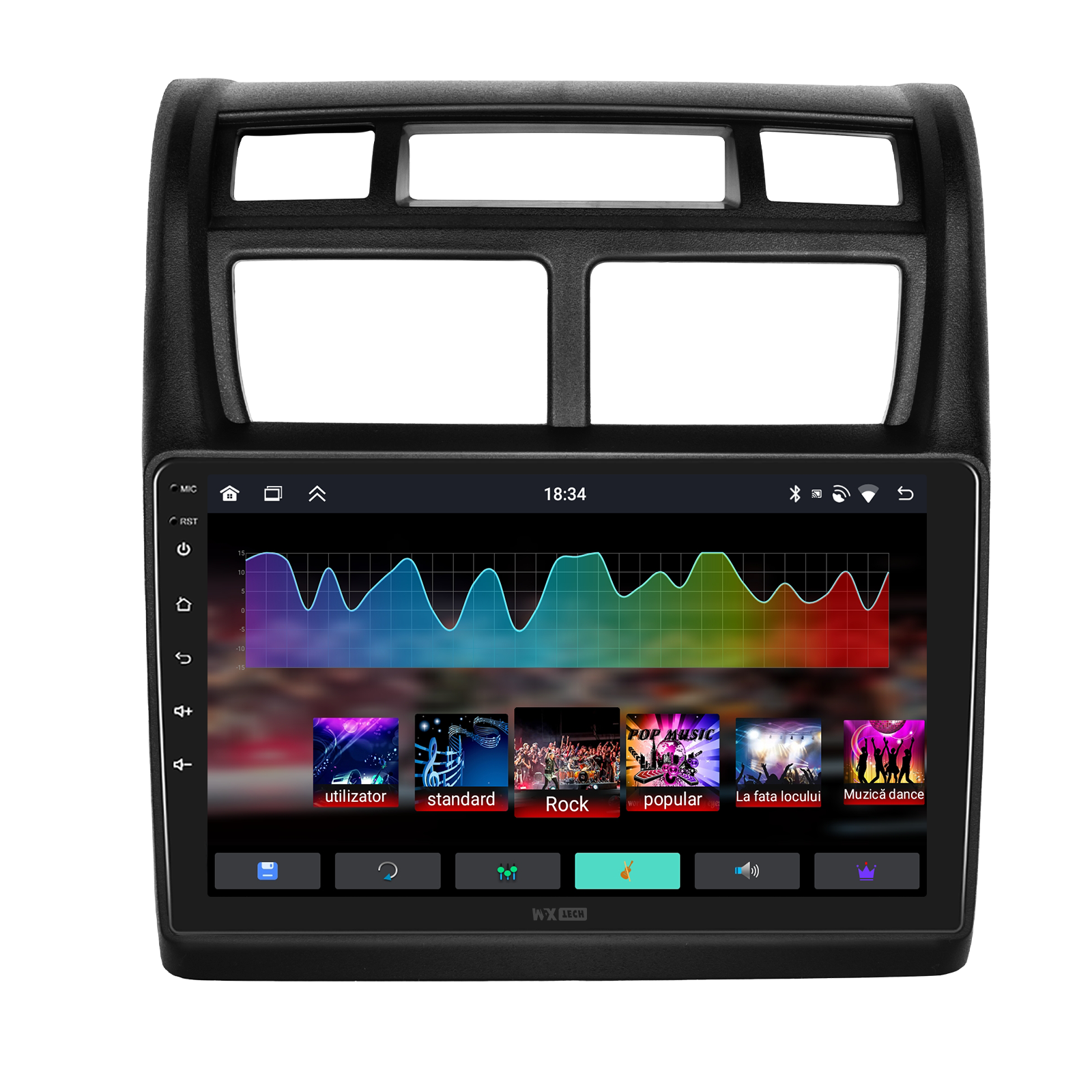 Sistemul include radio RDS cu afisare post si melodie, comutare automata pe frecventa cea mai buna si procesare audio DSP cu egalizator si filtru activ pentru sunet clar, echilibrat si personalizabil.