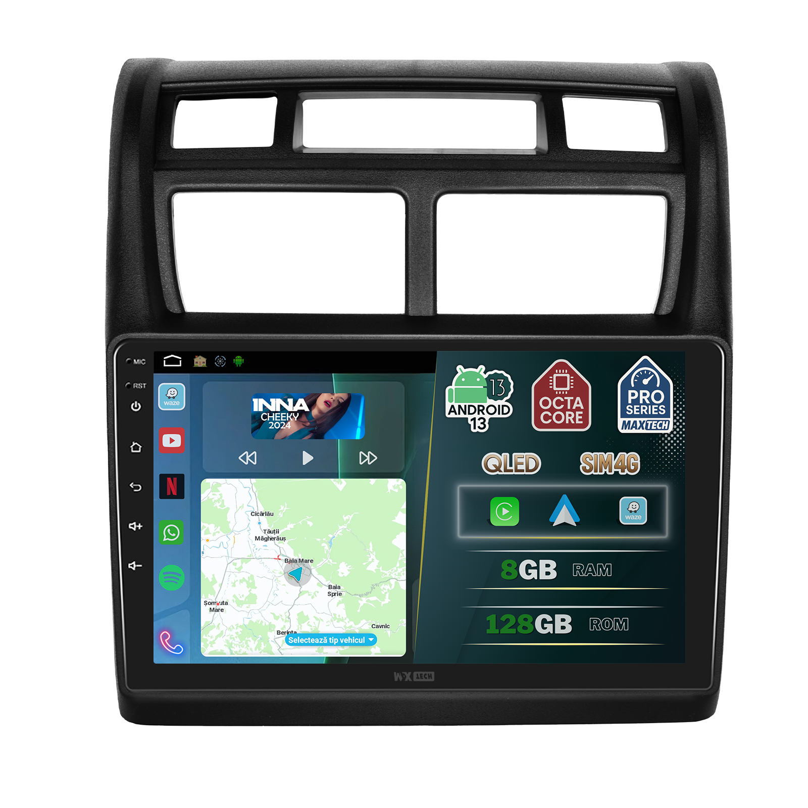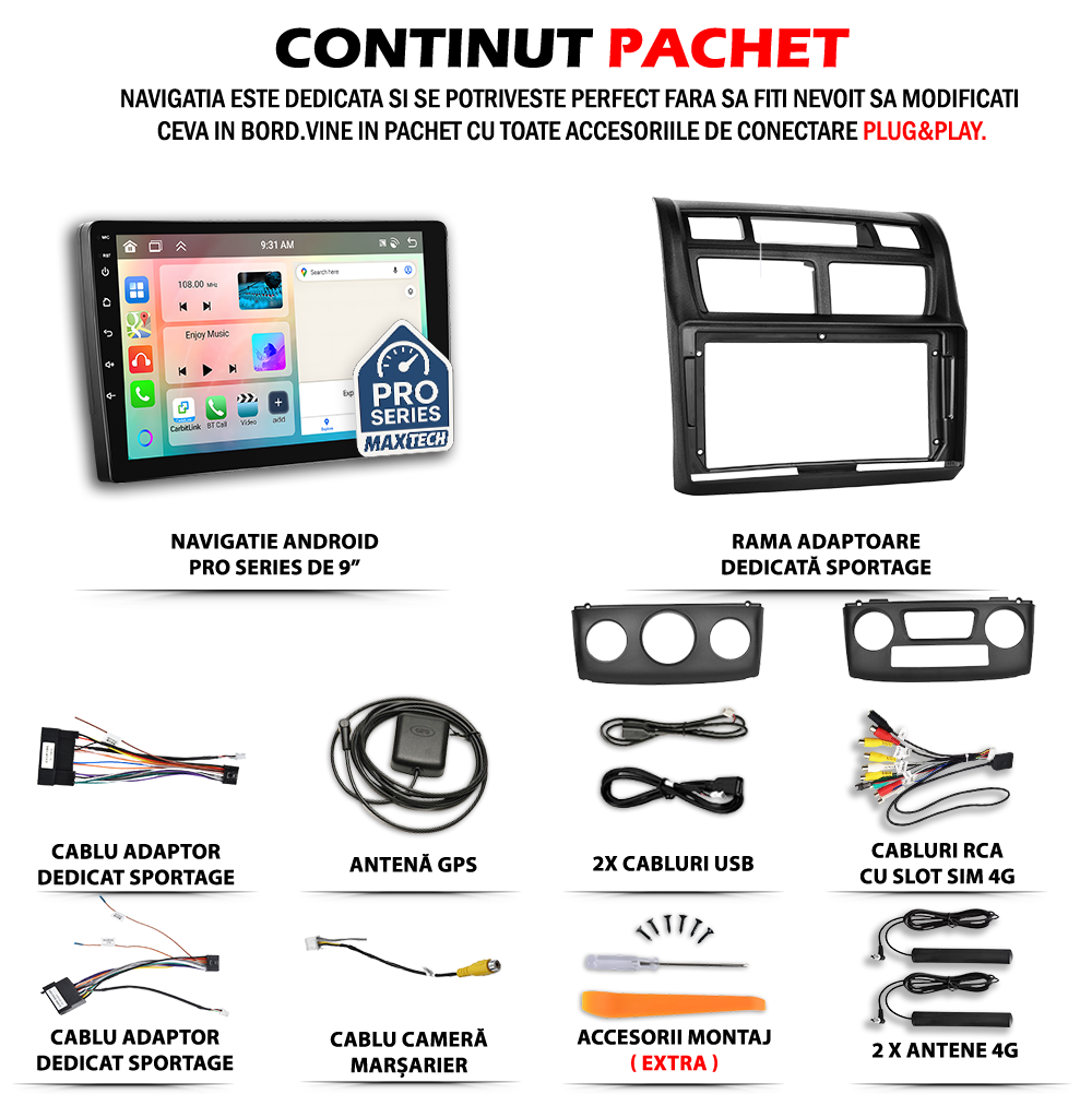 Navigatie KIA Sportage 2007-2013 dedicata, MaxTech® PRO SERIES, 8 GB Ram 128 GB Rom OctaCore, Carplay & Android auto, Ecran 9” HD Touch, SIM 4G, GPS, Wifi, Bluetooth, Radio, EQ, Waze, Youtube