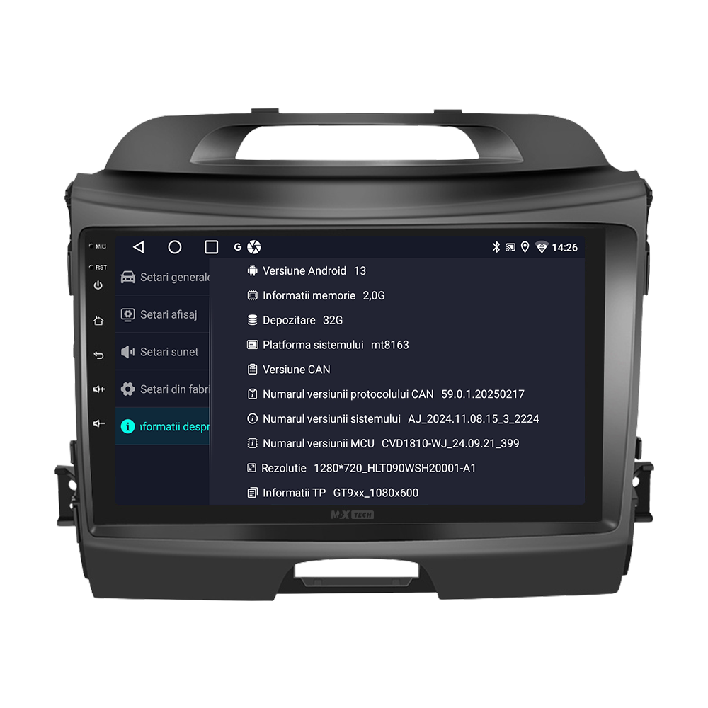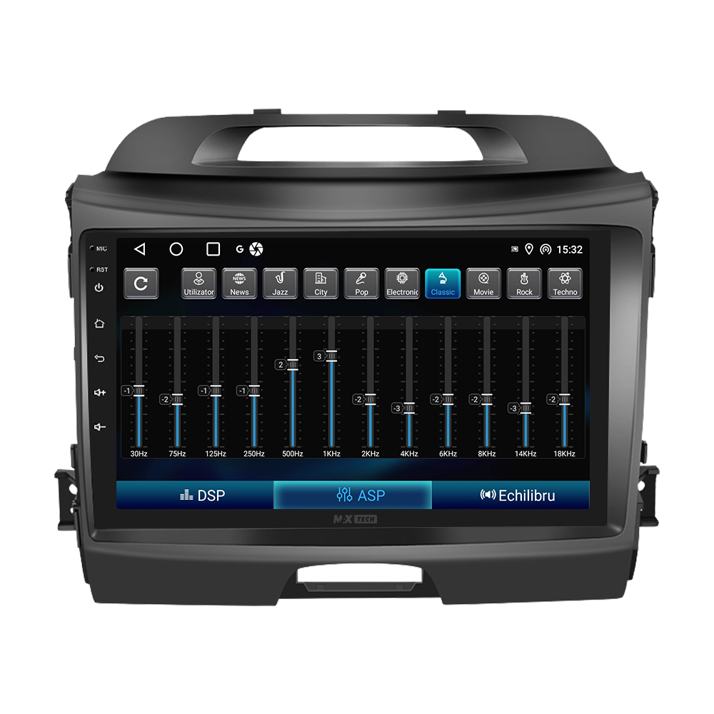 Sistemul include radio RDS cu afisare post si melodie, comutare automata pe frecventa cea mai buna si procesare audio DSP cu egalizator si filtru activ pentru sunet clar, echilibrat si personalizabil.