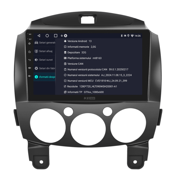 Sistemul include radio RDS cu afisare post si melodie, comutare automata pe frecventa cea mai buna si procesare audio DSP cu egalizator si filtru activ pentru sunet clar, echilibrat si personalizabil.