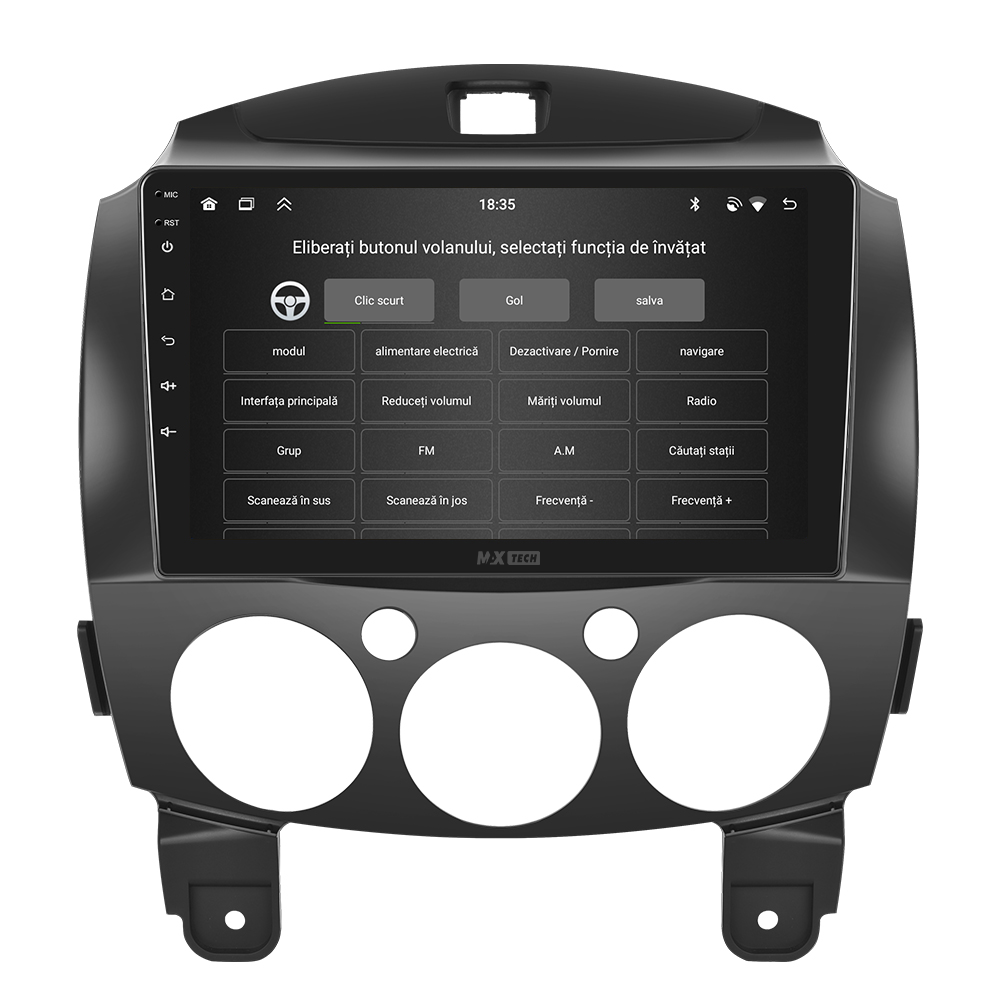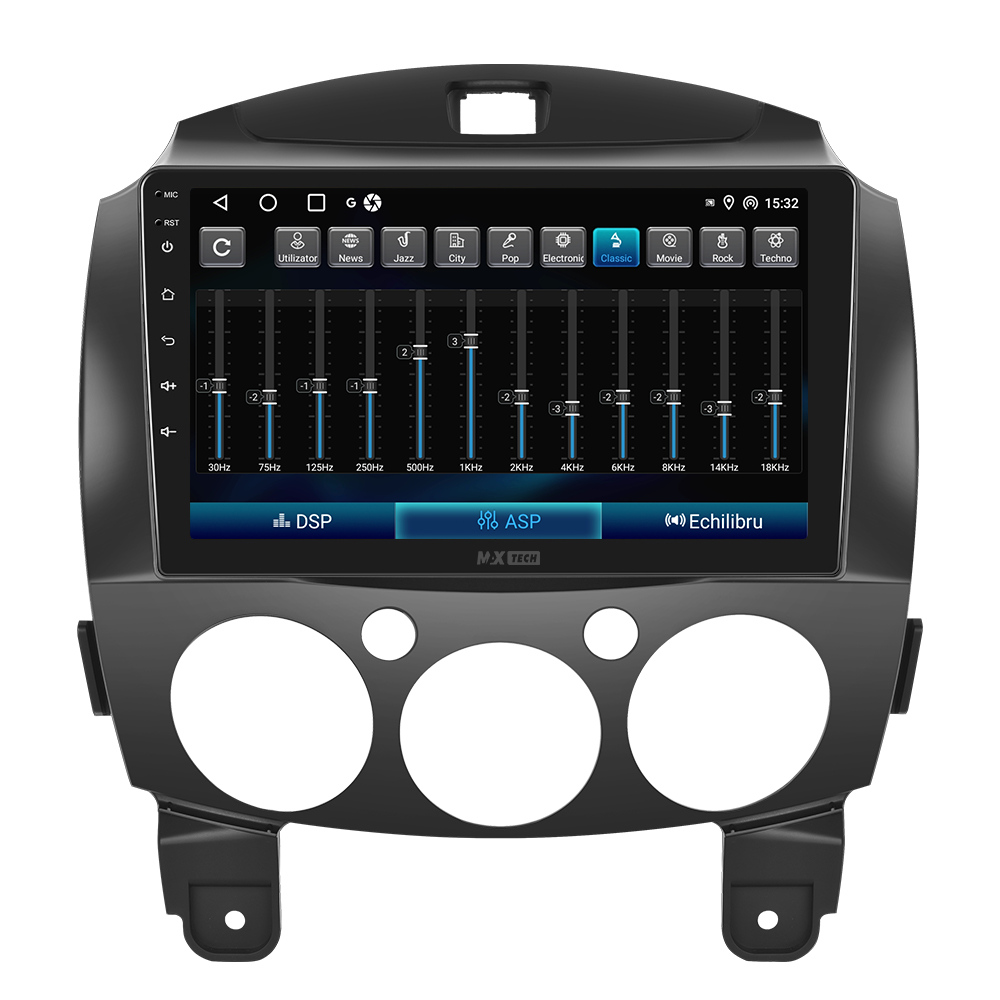 Sistemul include radio RDS cu afisare post si melodie, comutare automata pe frecventa cea mai buna si procesare audio DSP cu egalizator si filtru activ pentru sunet clar, echilibrat si personalizabil.