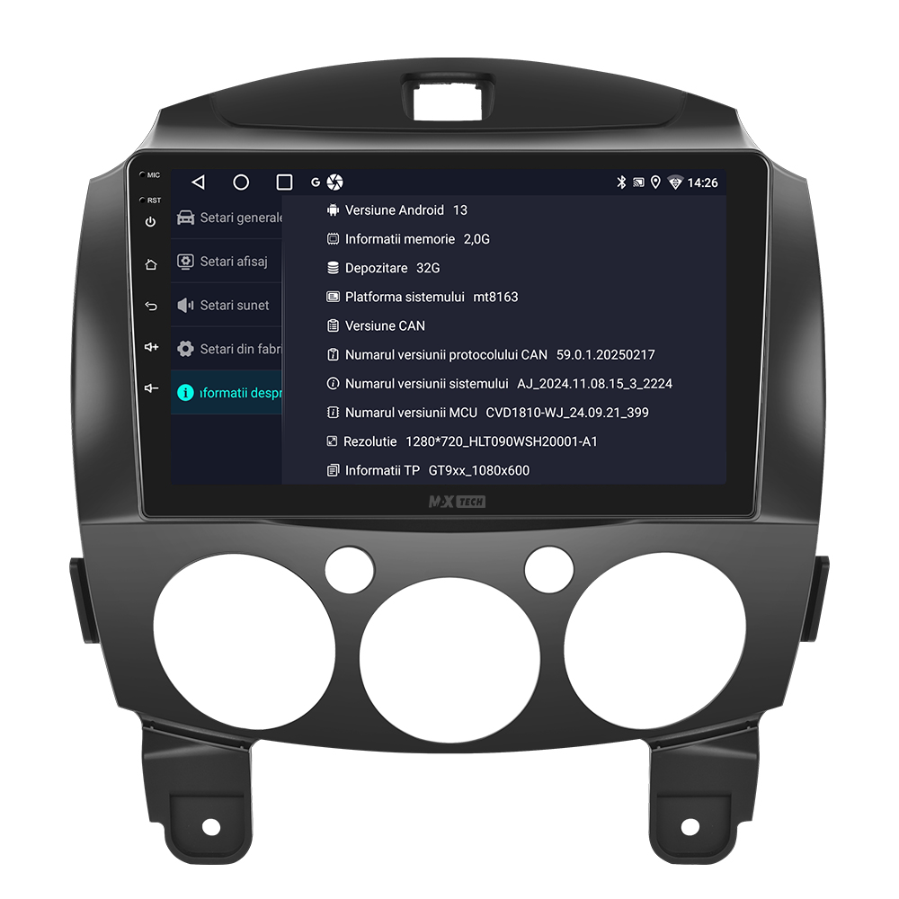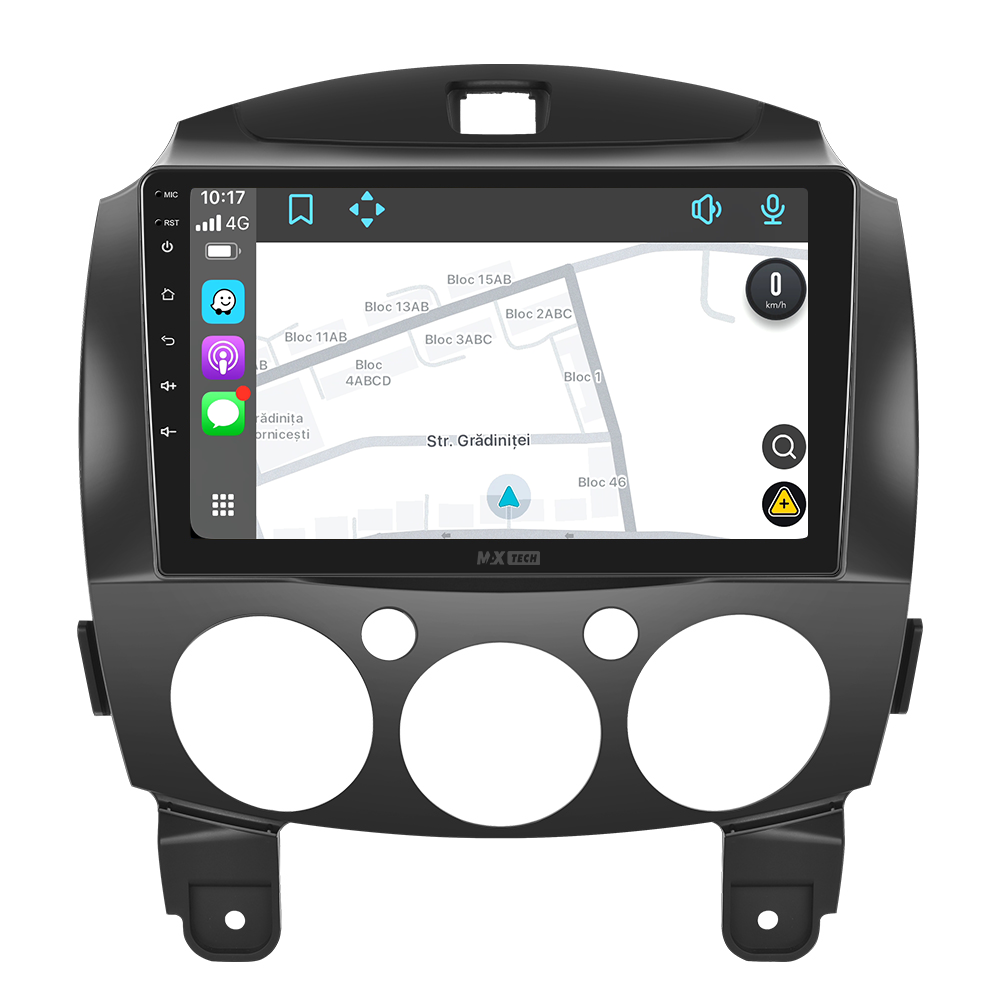 Navigatie Mazda 2 (2007-2014) dedicata, MaxTech® PRO SERIES, 2 GB Ram 32 GB Rom, Carplay & Android auto, Ecran 9 ” HD Touch, GPS, Wifi, Bluetooth, Radio, USB, EQ, DSP, Waze, Youtube