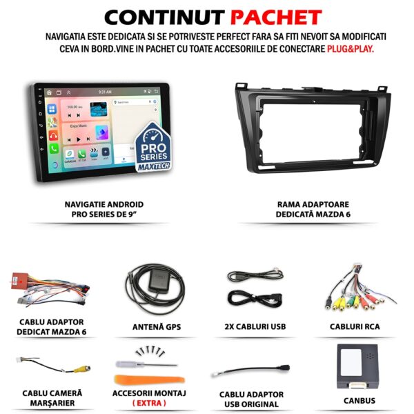 Navigatie Mazda 6 2008-2013 dedicata, MaxTech® PRO SERIES, 8 GB Ram 128 GB Rom OctaCore, Carplay & Android auto, Ecran 9” HD Touch, SIM 4G, GPS, Wifi, Bluetooth, Radio, EQ, Waze, Youtube