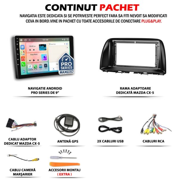 Navigatie Mazda CX-5 2012-2015 dedicata, MaxTech® PRO SERIES, 4 GB Ram 64 GB Rom OctaCore, Carplay & Android auto, Ecran 9 ” HD Touch, GPS, Wifi, Bluetooth, Radio, USB, EQ, DSP, Waze