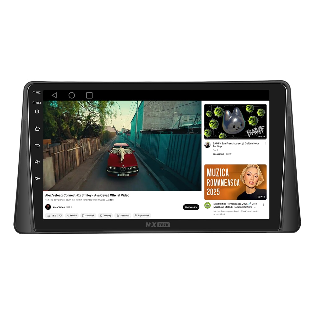 Sistemul include radio RDS cu afisare post si melodie, comutare automata pe frecventa cea mai buna si procesare audio DSP cu egalizator si filtru activ pentru sunet clar, echilibrat si personalizabil.