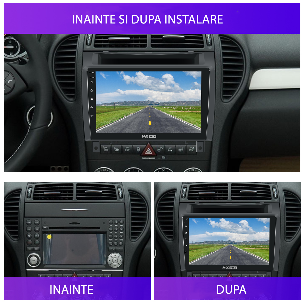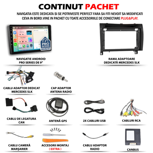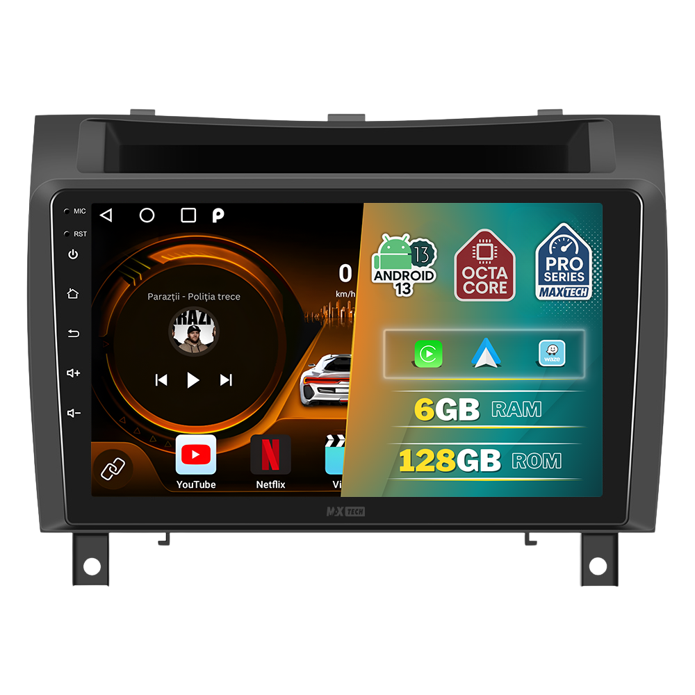 Navigatie Mercedes Benz SLK 2008–2011 dedicata, MaxTech® PRO SERIES, 6 GB Ram 128 GB Rom OctaCore, Carplay & Android auto, Ecran 9” HD Touch, GPS, Wifi, Bluetooth, Radio