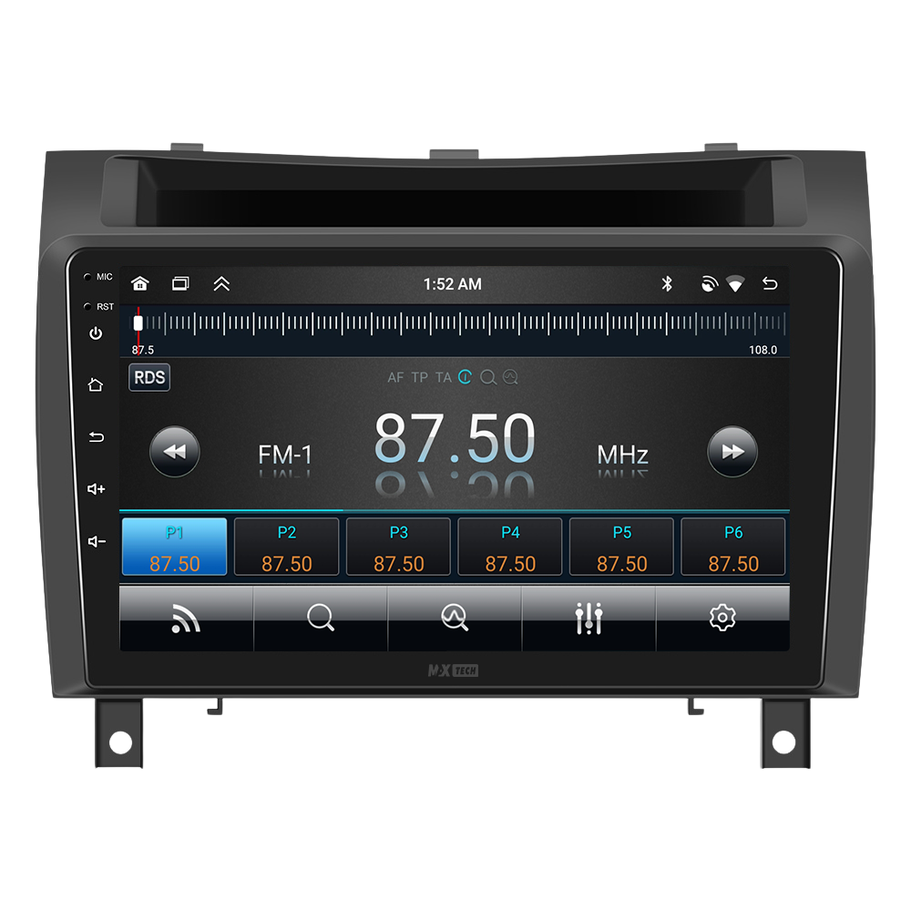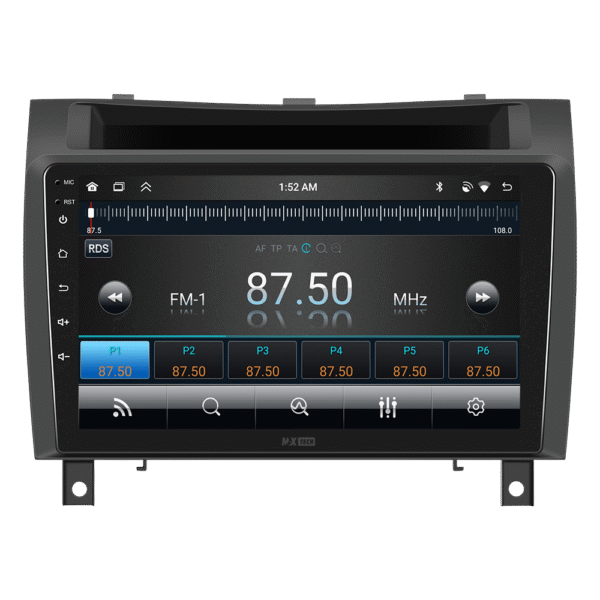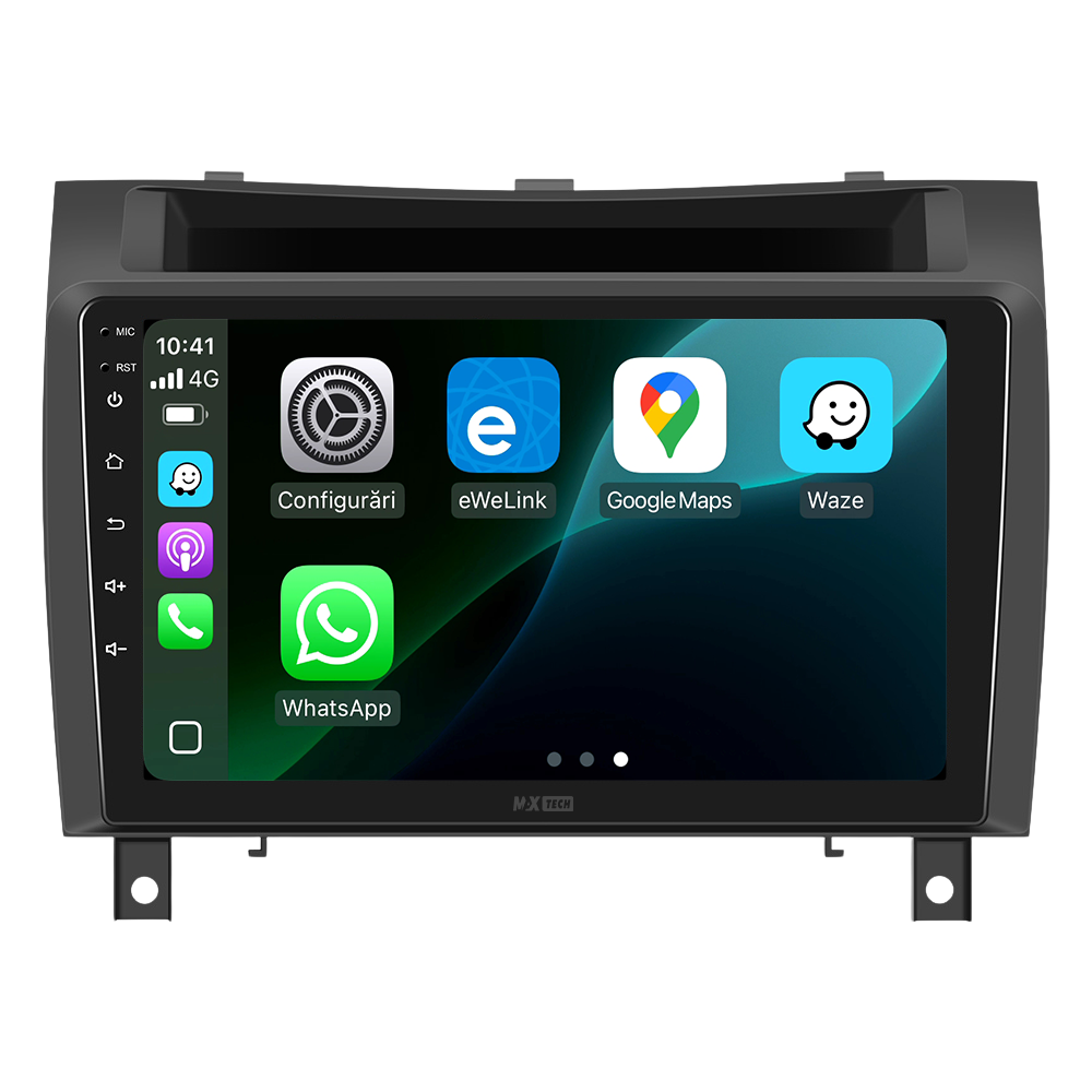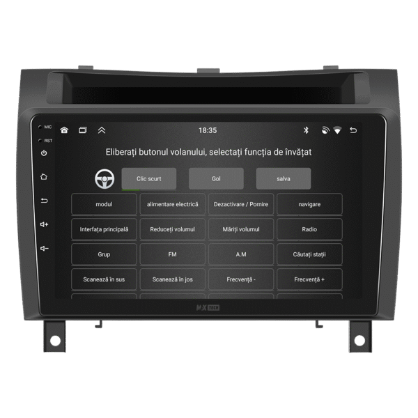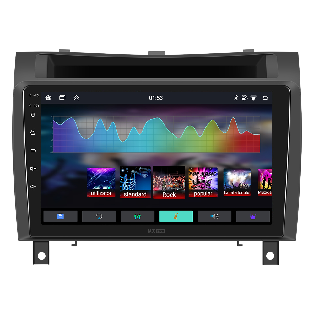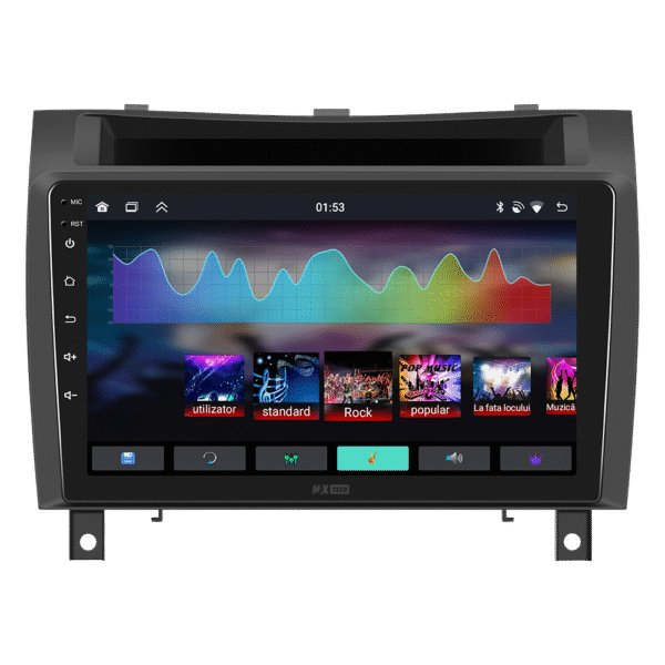 Sistemul include radio RDS cu afisare post si melodie, comutare automata pe frecventa cea mai buna si procesare audio DSP cu egalizator si filtru activ pentru sunet clar, echilibrat si personalizabil.