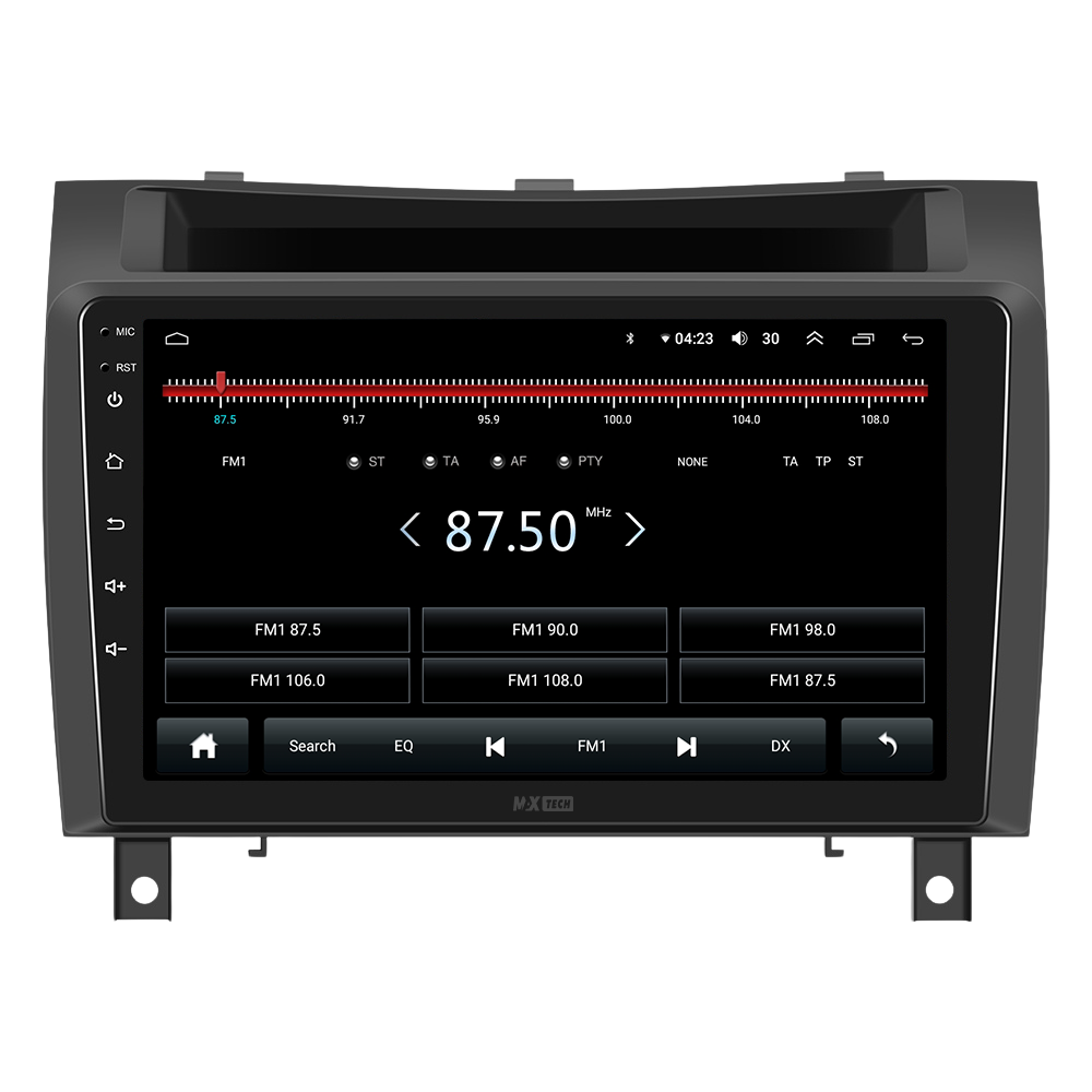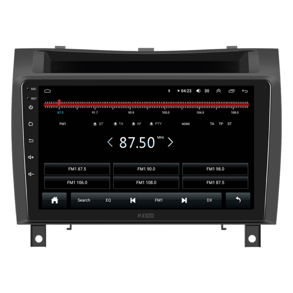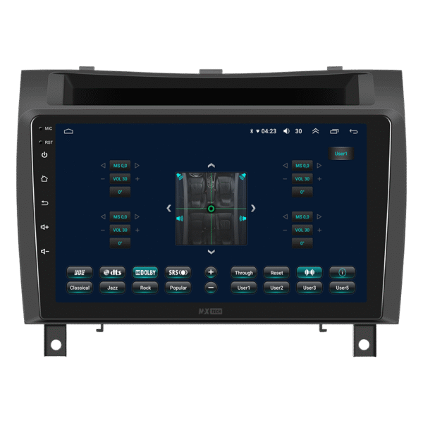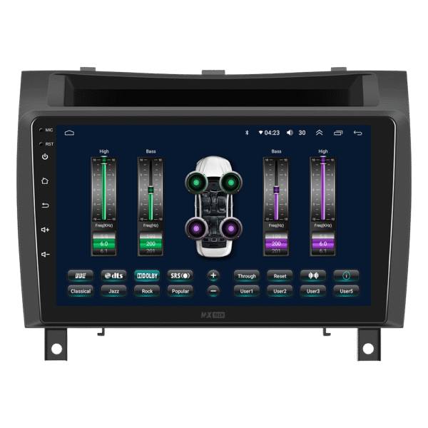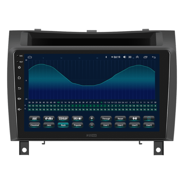 Sistem audio cu suport AM/FM/RDS, transmisie muzica online prin FM. Include equalizator (EQ) pentru ajustare fina a sunetului si filtru activ (Crossover) pentru directionarea frecventelor catre difuzoare dedicate (bass, inalte etc.).