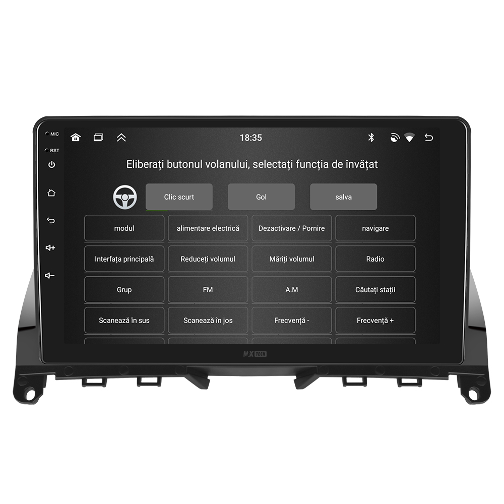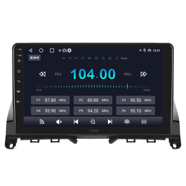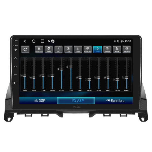 Sistemul include radio RDS cu afisare post si melodie, comutare automata pe frecventa cea mai buna si procesare audio DSP cu egalizator si filtru activ pentru sunet clar, echilibrat si personalizabil.