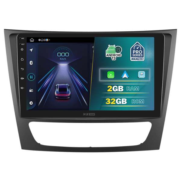 Navigatie Mercedes E-Class W211 / CLS W219 (2005-2008) dedicata, MaxTech® PRO SERIES, 2 GB Ram 32 GB Rom, Carplay & Android auto, Ecran 9 ” HD Touch, GPS, Wifi, Bluetooth, Radio, USB, EQ, DSP, Waze