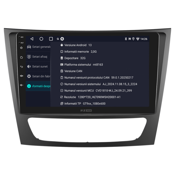 Sistemul include radio RDS cu afisare post si melodie, comutare automata pe frecventa cea mai buna si procesare audio DSP cu egalizator si filtru activ pentru sunet clar, echilibrat si personalizabil.