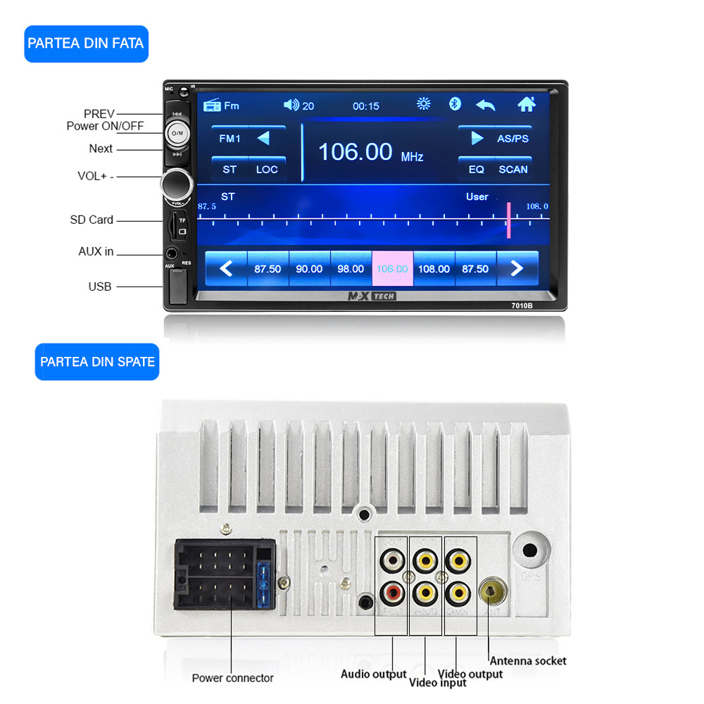 – Functia radio cu suport pentru cautare semi-automata / cautare manuala / frecventa de reglare fina;