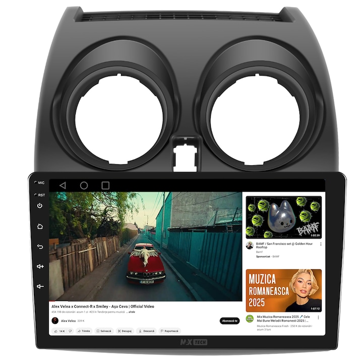 Sistemul include radio RDS cu afisare post si melodie, comutare automata pe frecventa cea mai buna si procesare audio DSP cu egalizator si filtru activ pentru sunet clar, echilibrat si personalizabil.