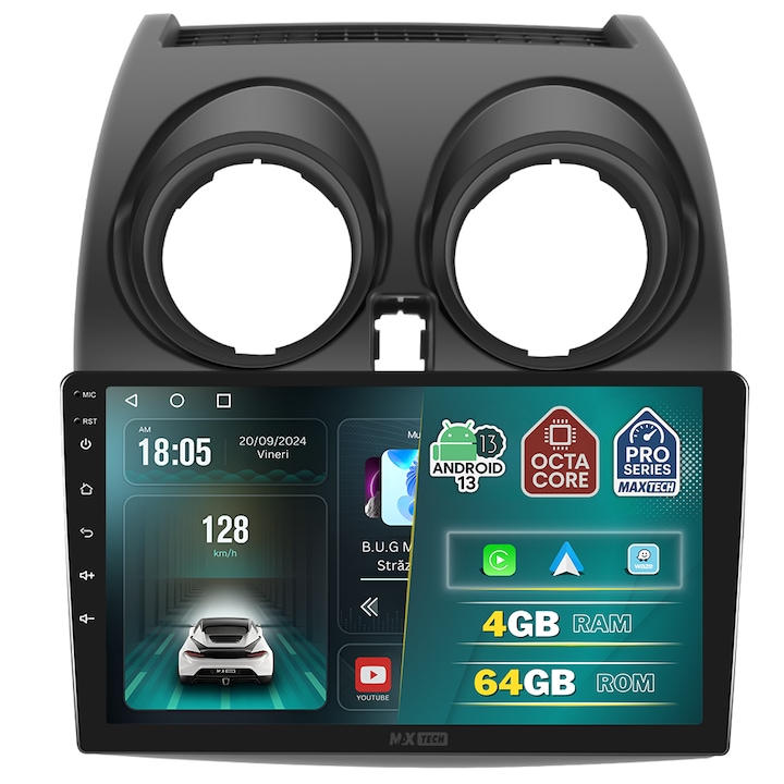 Navigatie Nissan Qashqai J10 2006-2013 dedicata, MaxTech® PRO SERIES, 4 GB Ram 64 GB Rom OctaCore, Carplay & Android auto, Ecran 9 ” HD Touch, GPS, Wifi, Bluetooth, Radio, USB, EQ, DSP, Waze