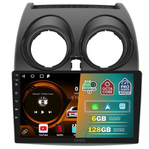 Navigatie Nissan Qashqai J10 2006-2013 dedicata, MaxTech® PRO SERIES, 6 GB Ram 128 GB Rom OctaCore, Carplay & Android auto, Ecran 9” HD Touch, GPS, Wifi, Bluetooth, Radio, USB, EQ, DSP, Waze