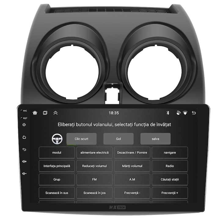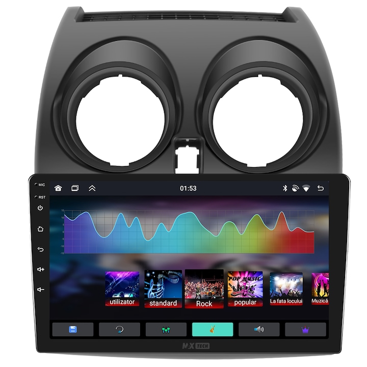 Sistemul include radio RDS cu afisare post si melodie, comutare automata pe frecventa cea mai buna si procesare audio DSP cu egalizator si filtru activ pentru sunet clar, echilibrat si personalizabil.