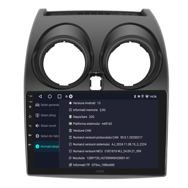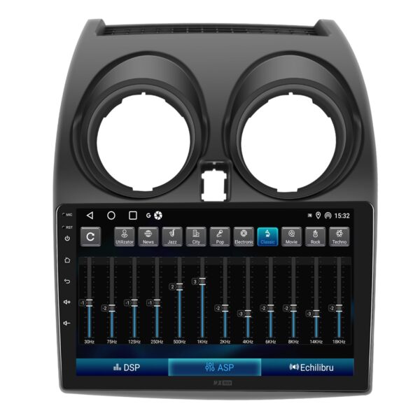 Sistemul include radio RDS cu afisare post si melodie, comutare automata pe frecventa cea mai buna si procesare audio DSP cu egalizator si filtru activ pentru sunet clar, echilibrat si personalizabil.