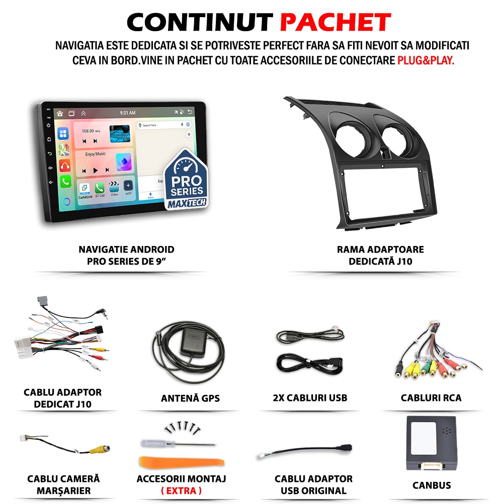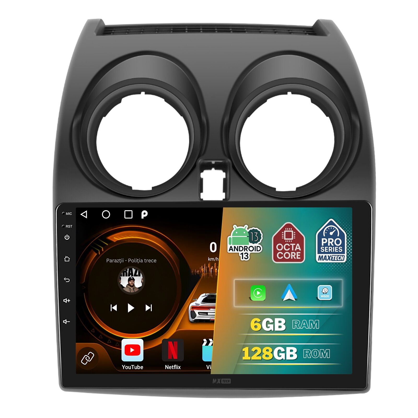 Navigatie Nissan Qashqai J10 (2006-2013) dedicata, CANBUS Inclus, MaxTech® PRO SERIES, 6 GB Ram 128 GB Rom OctaCore, Carplay & Android auto, Ecran 9” HD Touch, GPS, Wifi, Bluetooth, Radio, Waze