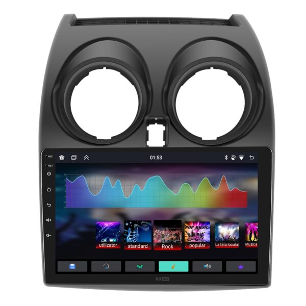 Sistemul include radio RDS cu afisare post si melodie, comutare automata pe frecventa cea mai buna si procesare audio DSP cu egalizator si filtru activ pentru sunet clar, echilibrat si personalizabil.