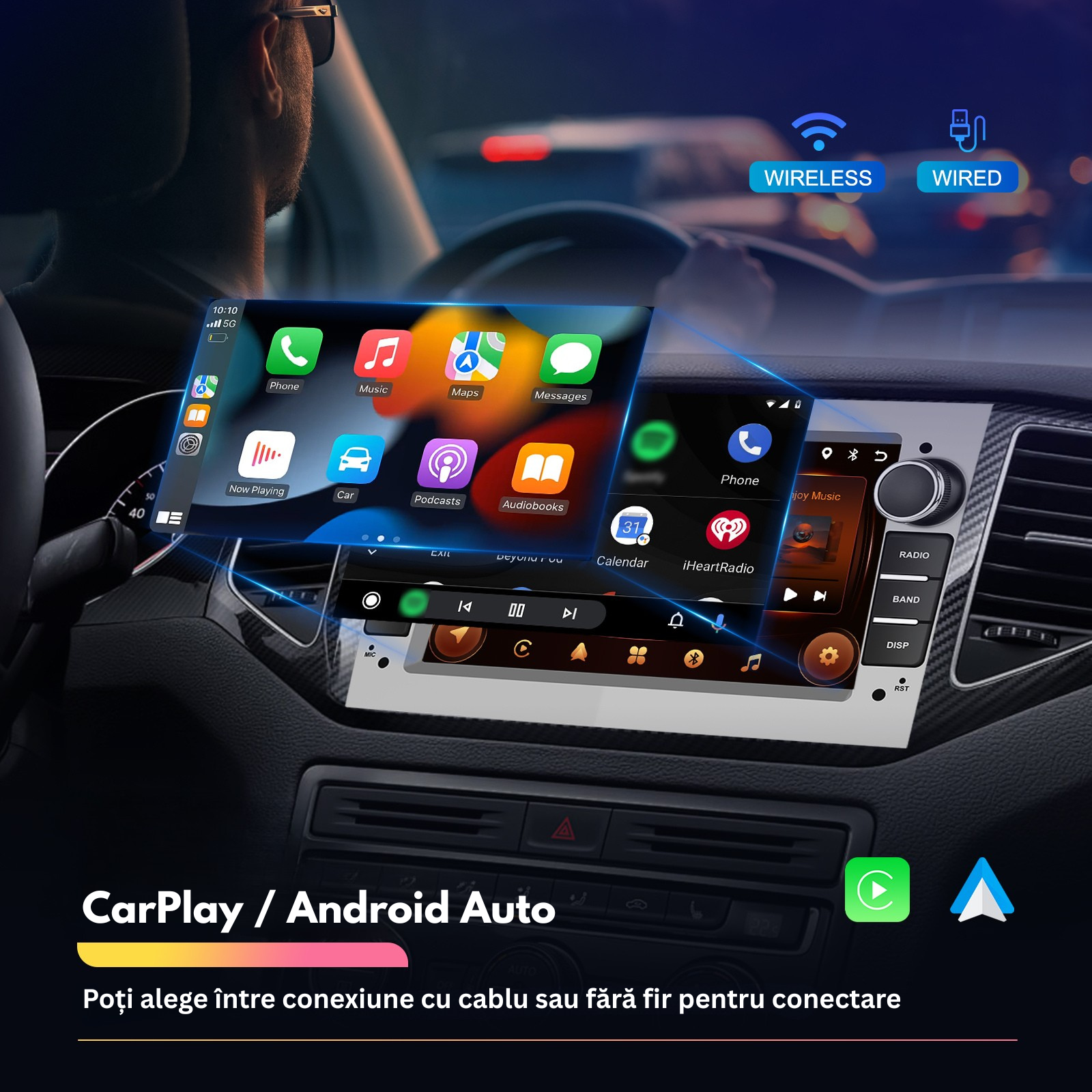 CarPlay & Android Auto – Wireless/USB – Conecteaza telefonul rapid, wireless sau prin cablu, si foloseste aplicatiile preferate direct pe ecranul navigatiei.
