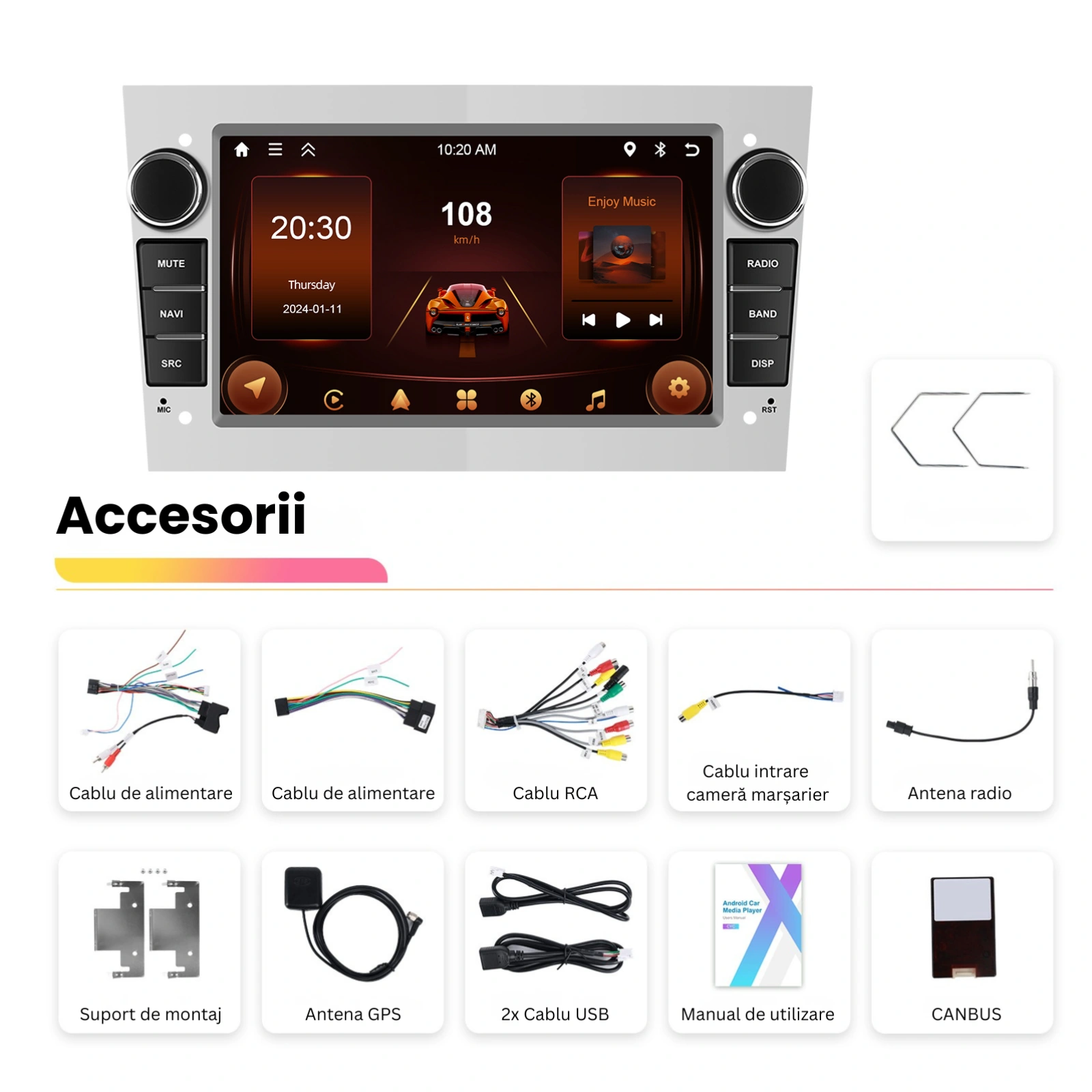 Navigatie Opel 4GB Ram 64GB Memorie, MaxTech® PRO SERIES, Carplay & Android auto, Ecran 7” HD Touch, Astra, Corsa, Zafira, Vivaro, Meriva, Antara, Signum, Tigra GPS, Wifi, Bluetooth, Waze, Argintiu