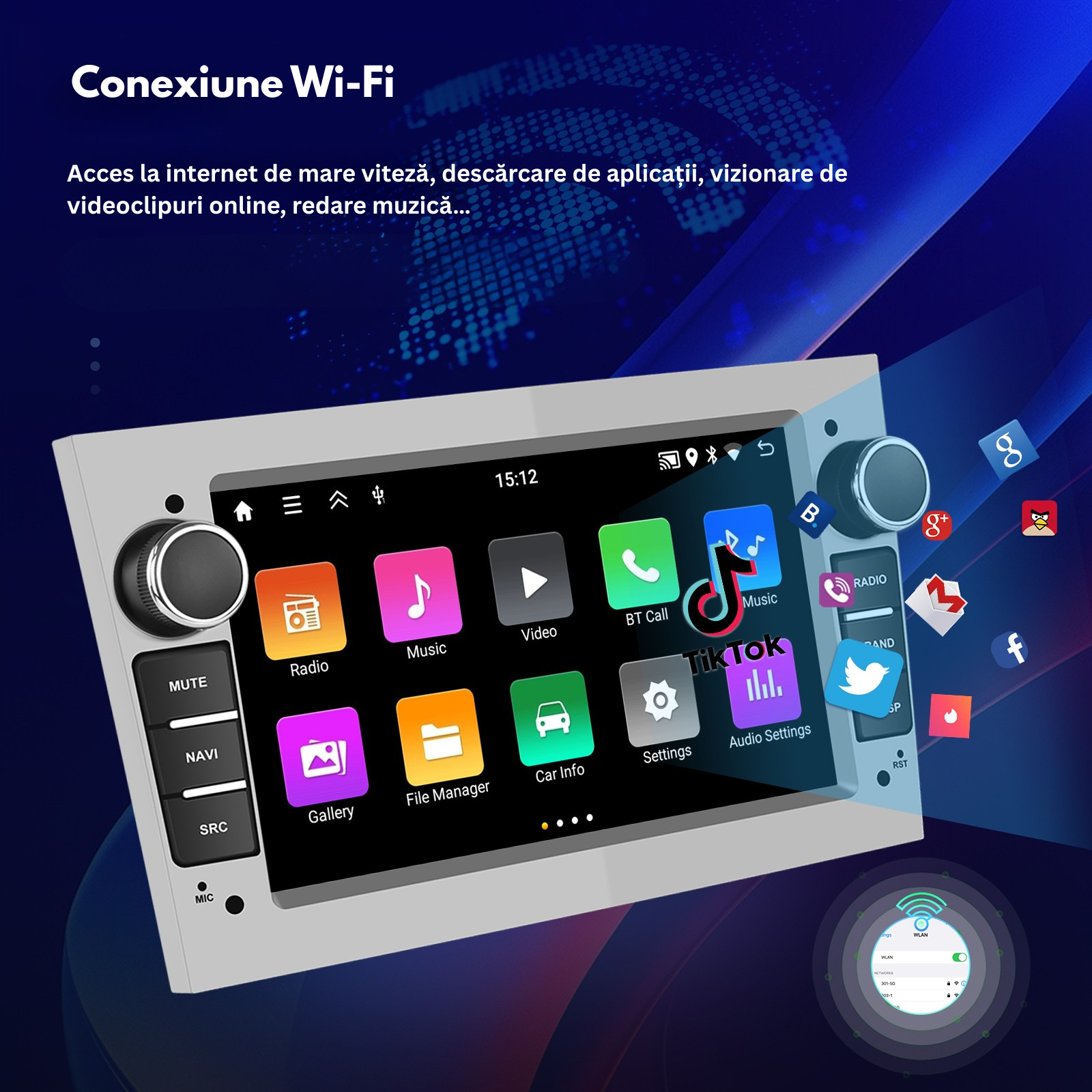 WiFi integrat – acces la internet, YouTube, TikTok, Waze etc.