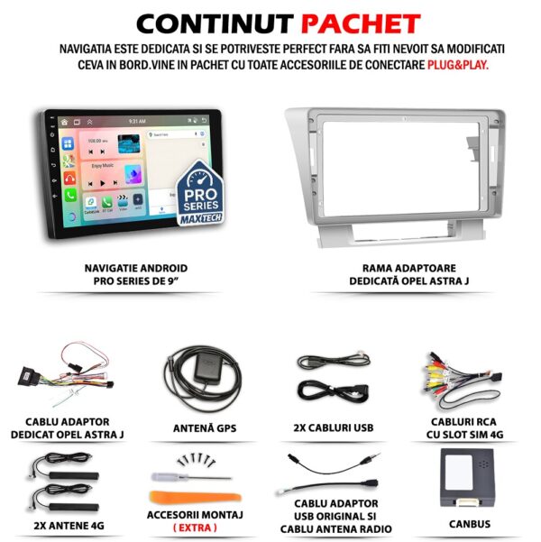 Navigatie Opel Astra J 2010–2017 dedicata, MaxTech® PRO SERIES, 8 GB Ram 128 GB Rom OctaCore, Carplay & Android auto, Ecran 9” HD Touch, SIM 4G, GPS, Wifi, Bluetooth, Radio, EQ, Waze, Youtube
