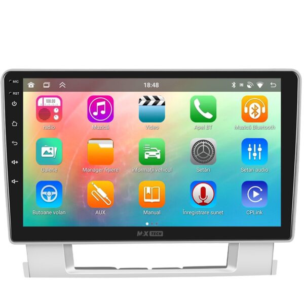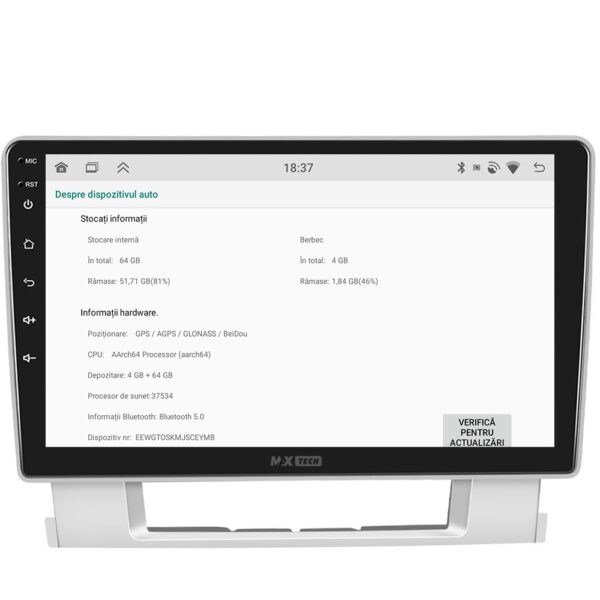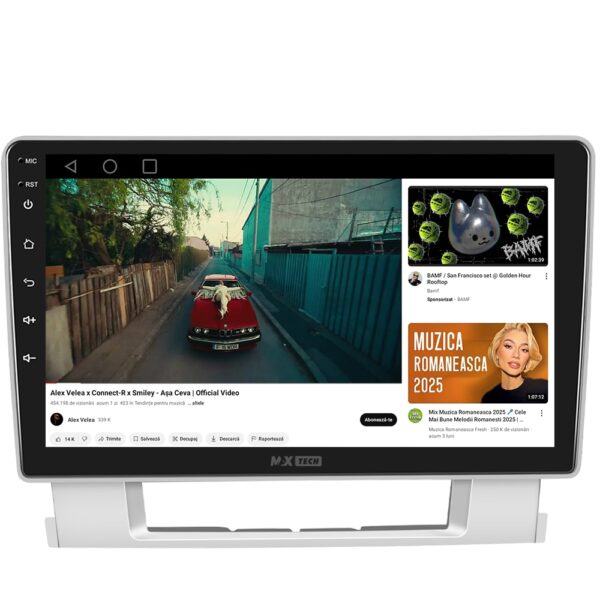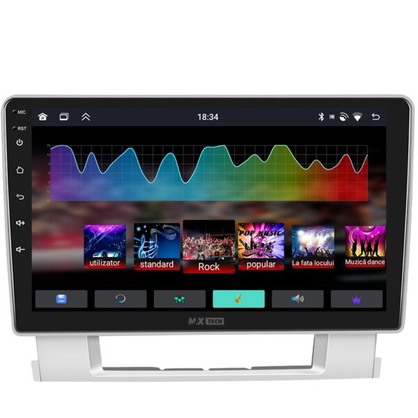 Sistemul include radio RDS cu afisare post si melodie, comutare automata pe frecventa cea mai buna si procesare audio DSP cu egalizator si filtru activ pentru sunet clar, echilibrat si personalizabil.