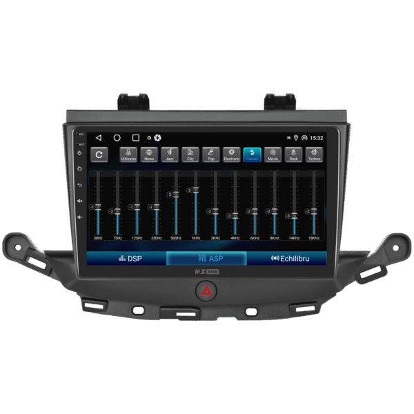 Sistemul include radio RDS cu afisare post si melodie, comutare automata pe frecventa cea mai buna si procesare audio DSP cu egalizator si filtru activ pentru sunet clar, echilibrat si personalizabil.