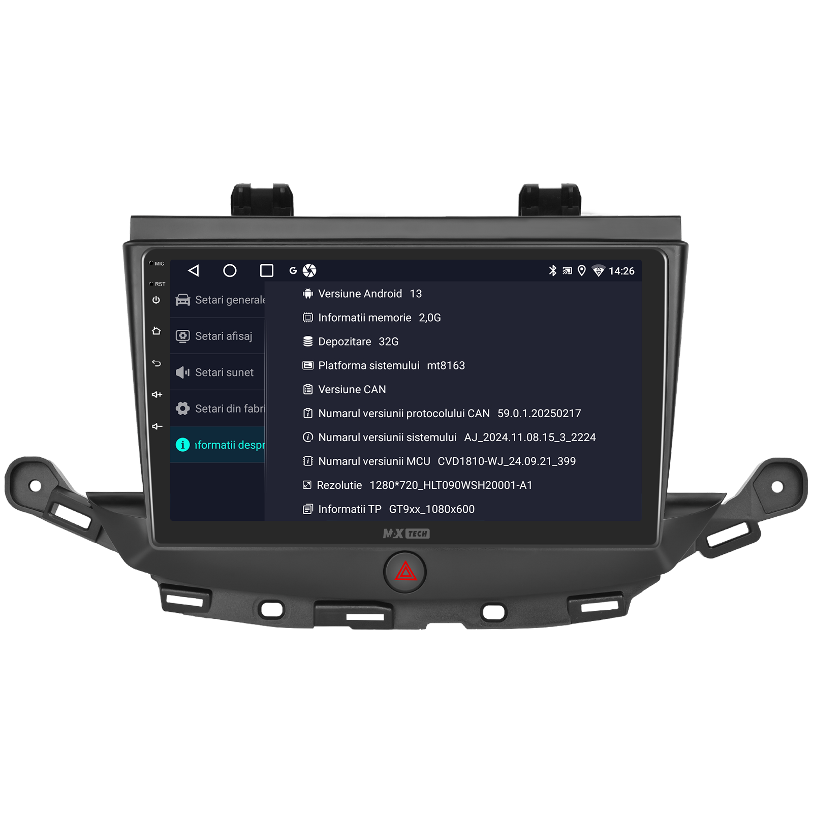 Sistemul include radio RDS cu afisare post si melodie, comutare automata pe frecventa cea mai buna si procesare audio DSP cu egalizator si filtru activ pentru sunet clar, echilibrat si personalizabil.