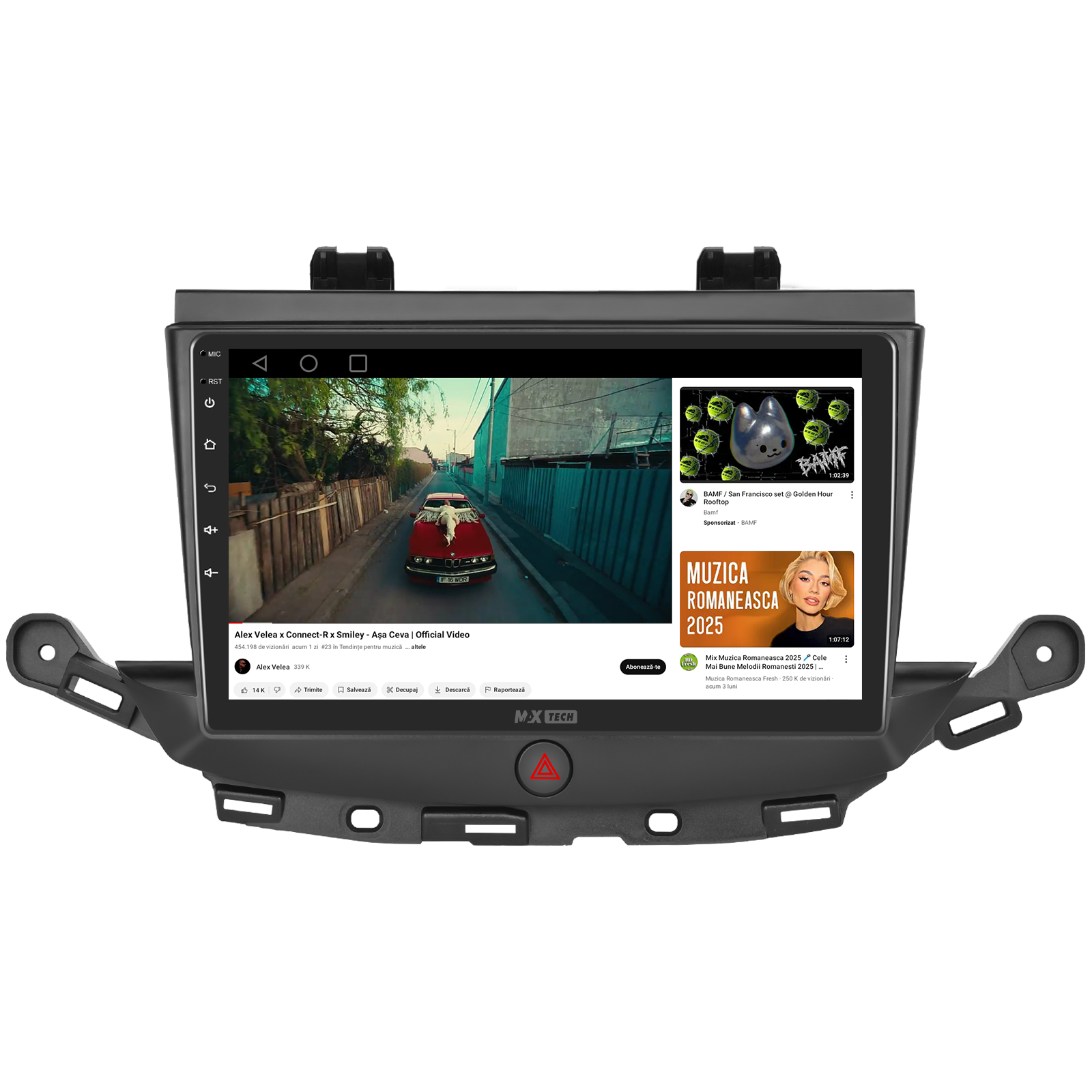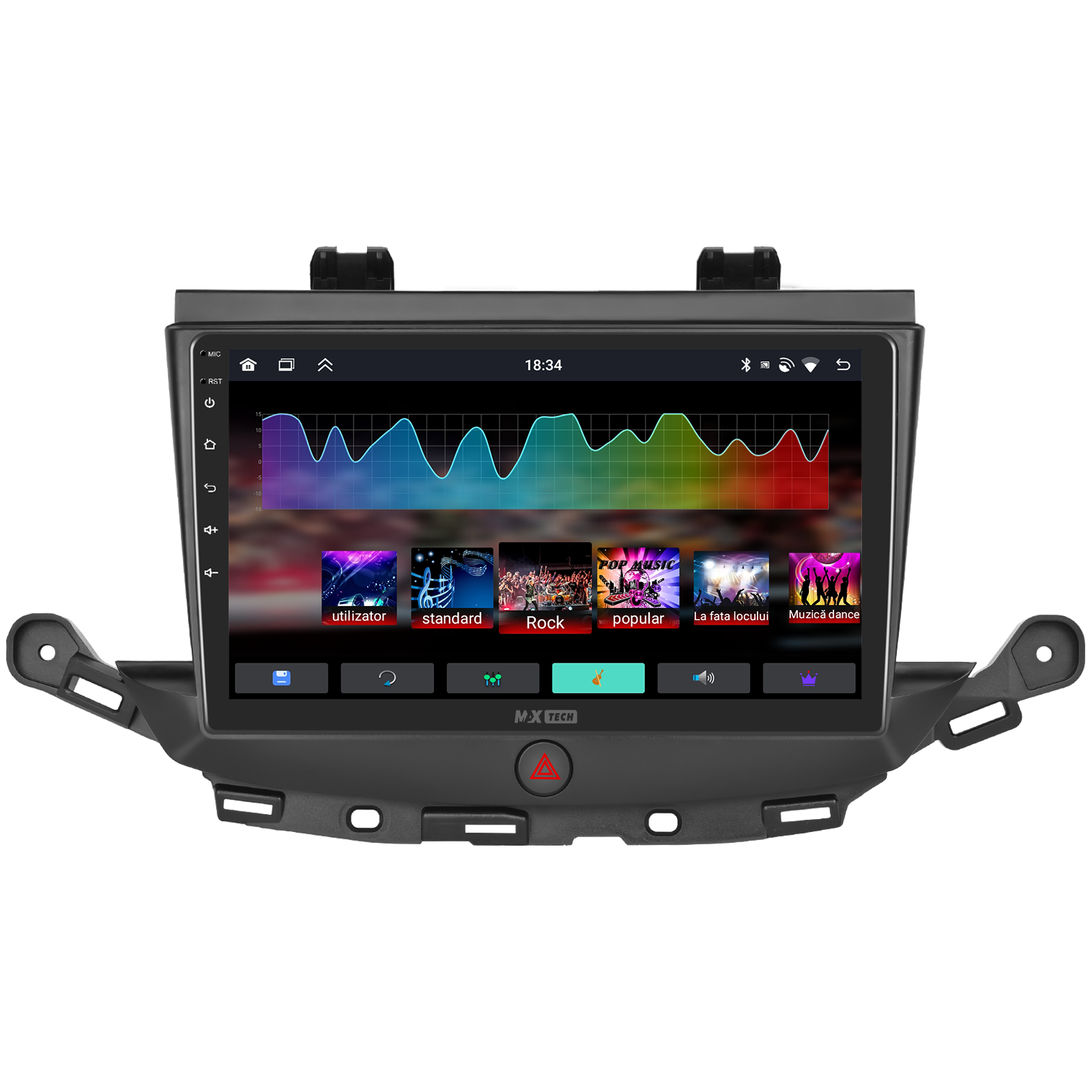 Sistemul include radio RDS cu afisare post si melodie, comutare automata pe frecventa cea mai buna si procesare audio DSP cu egalizator si filtru activ pentru sunet clar, echilibrat si personalizabil.