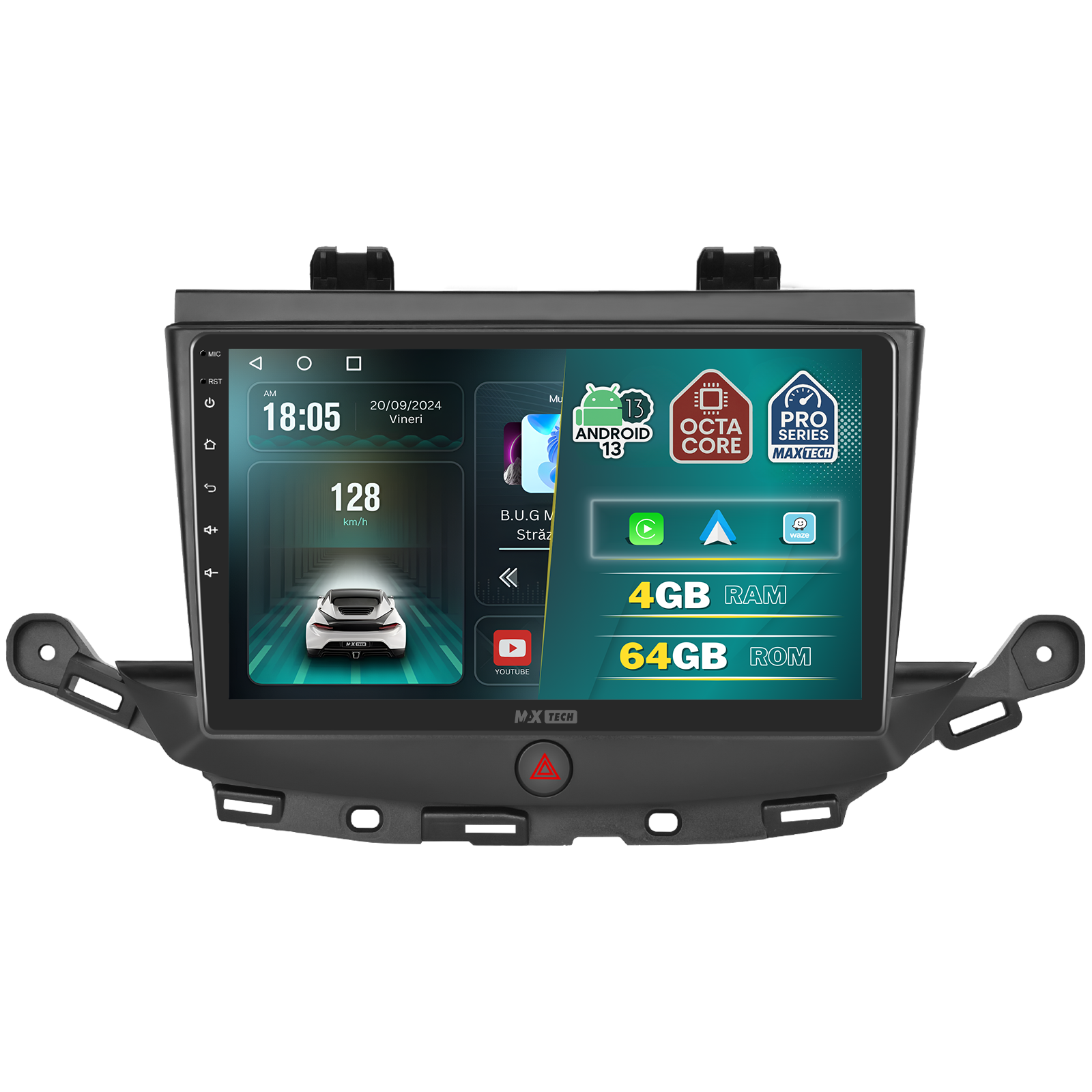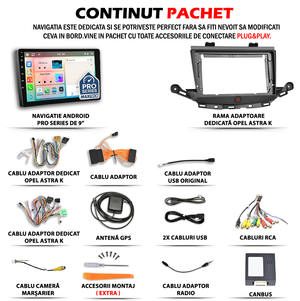 Navigatie Opel Astra K 2015-2019 dedicata, MaxTech® PRO SERIES, 4 GB Ram 64 GB Rom OctaCore, Carplay & Android auto, Ecran 9 ” HD Touch, GPS, Wifi, Bluetooth, Radio, USB, EQ, DSP, Waze