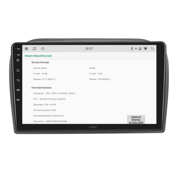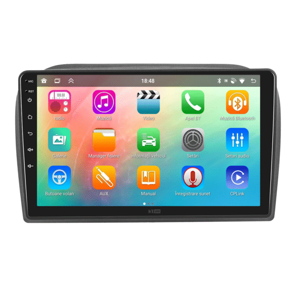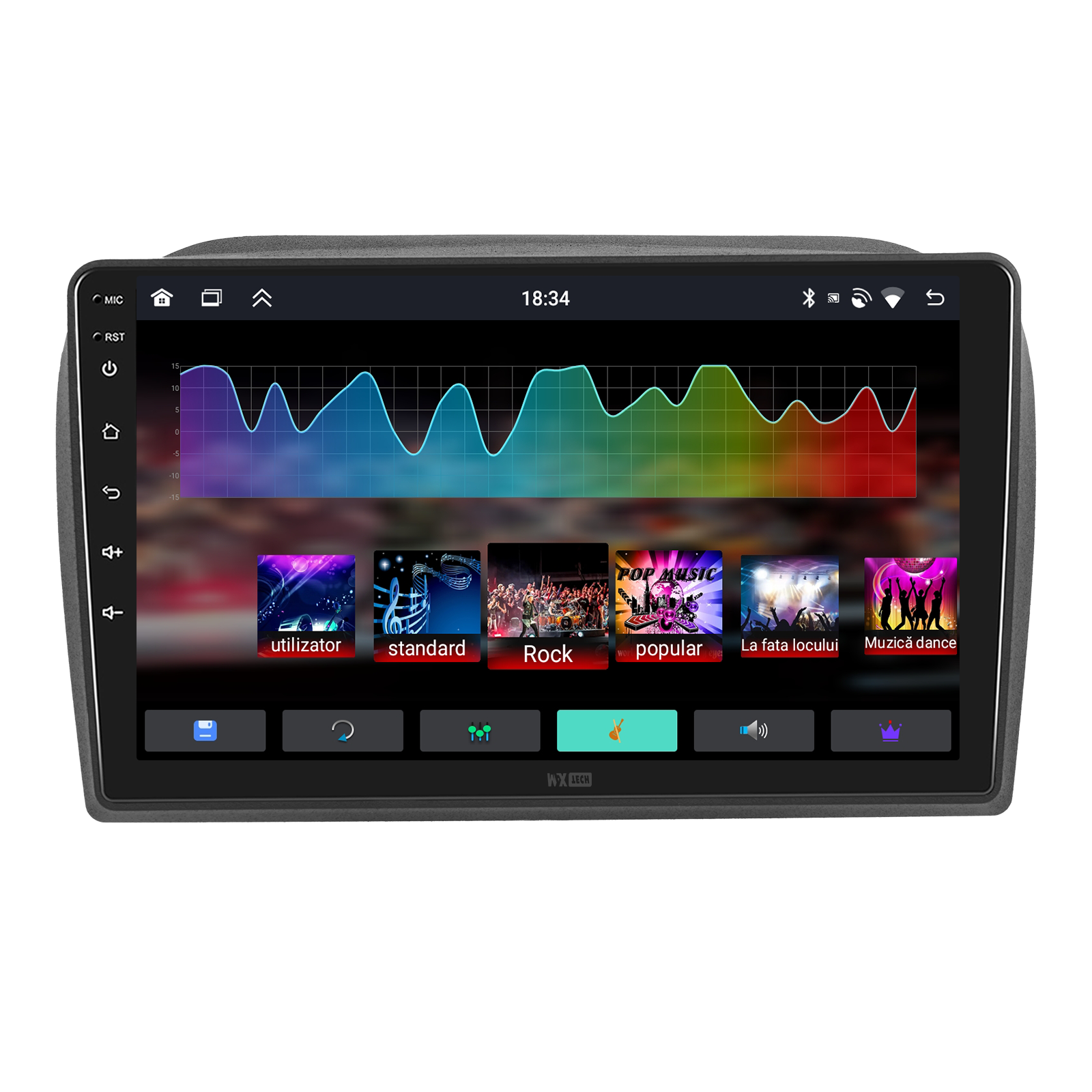 Sistemul include radio RDS cu afisare post si melodie, comutare automata pe frecventa cea mai buna si procesare audio DSP cu egalizator si filtru activ pentru sunet clar, echilibrat si personalizabil.