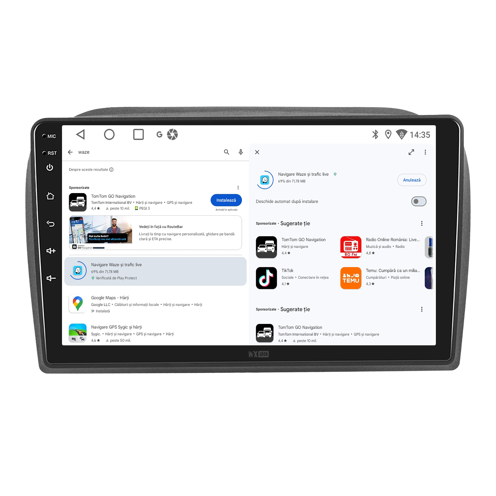 Sistemul ofera functionalitate de navigatie compatibila cu Google Maps, Waze, iGO si alte aplicatii, cu posibilitatea utilizarii hartilor atat online, cat si offline. Suporta comenzile de pe volan, asigurand un control rapid si sigur in timpul condusului.