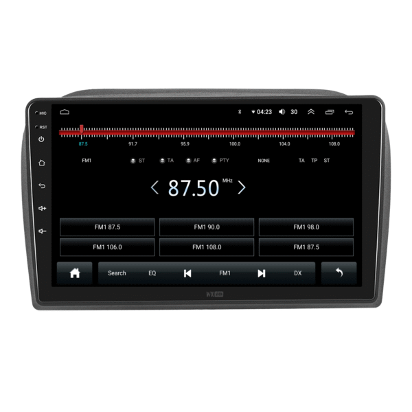 Sistem audio cu suport AM/FM/RDS, transmisie muzica online prin FM. Include equalizator (EQ) pentru ajustare fina a sunetului si filtru activ (Crossover) pentru directionarea frecventelor catre difuzoare dedicate (bass, inalte etc.).