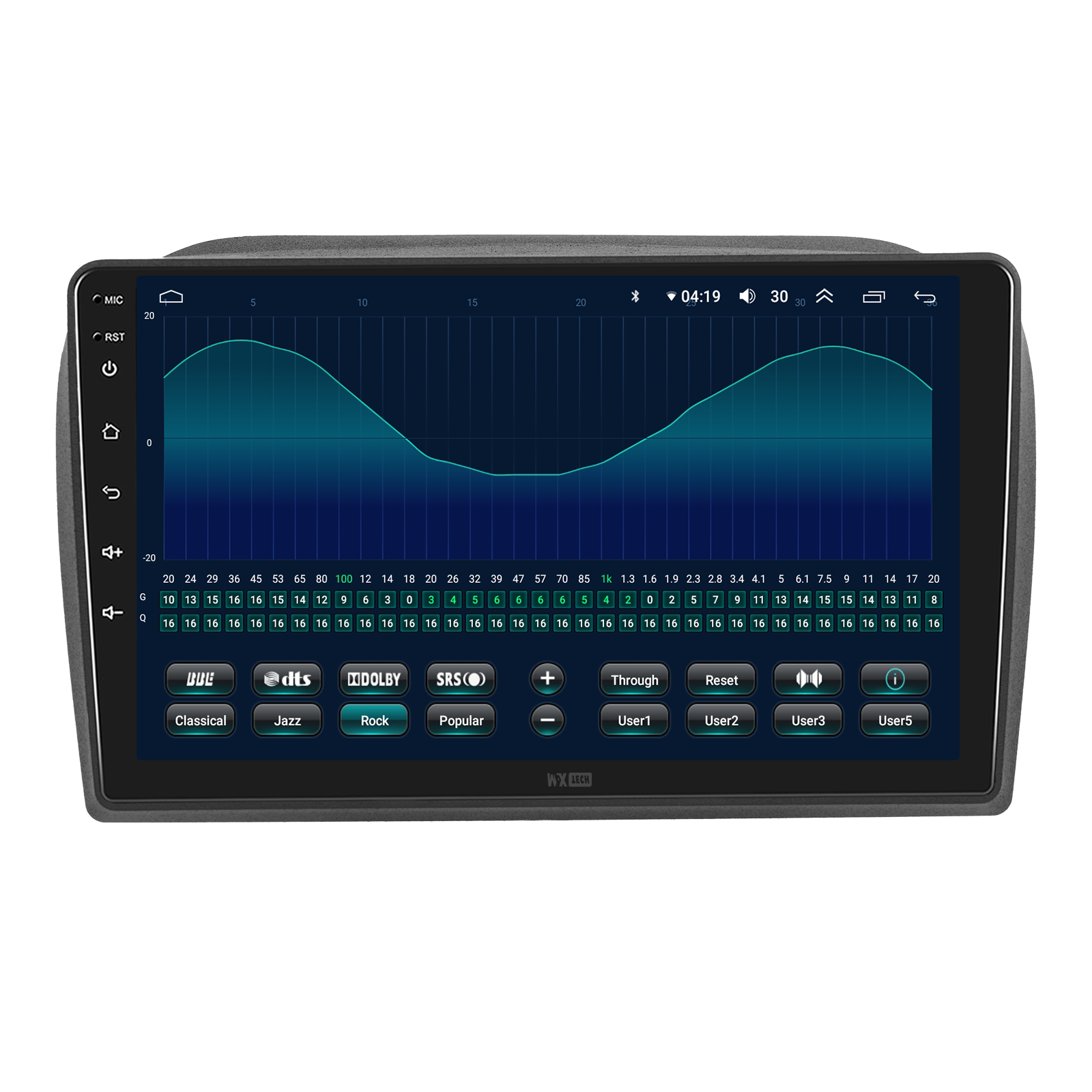 Sistem audio cu suport AM/FM/RDS, transmisie muzica online prin FM. Include equalizator (EQ) pentru ajustare fina a sunetului si filtru activ (Crossover) pentru directionarea frecventelor catre difuzoare dedicate (bass, inalte etc.).