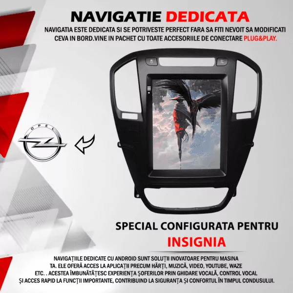 Navigatia este dedicata Opel Insignia si se potriveste perfect fara sa fiti nevoit sa modificati ceva in bord.Vine in pachet cu toate accesoriile de conectare Plug&Play.