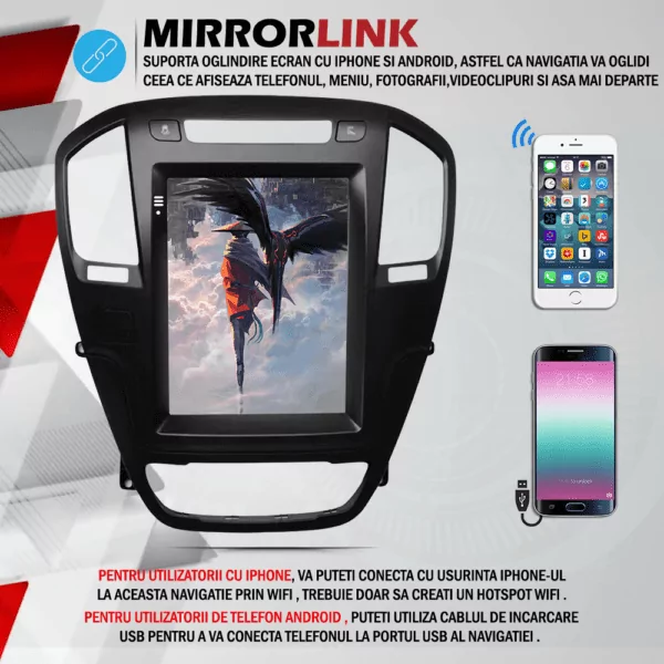 - Oglindire ecran: Reflecta ecranul telefonului tau pe ecranul navigatiei, permitand accesul la toate aplicatiile si functiile telefonului.