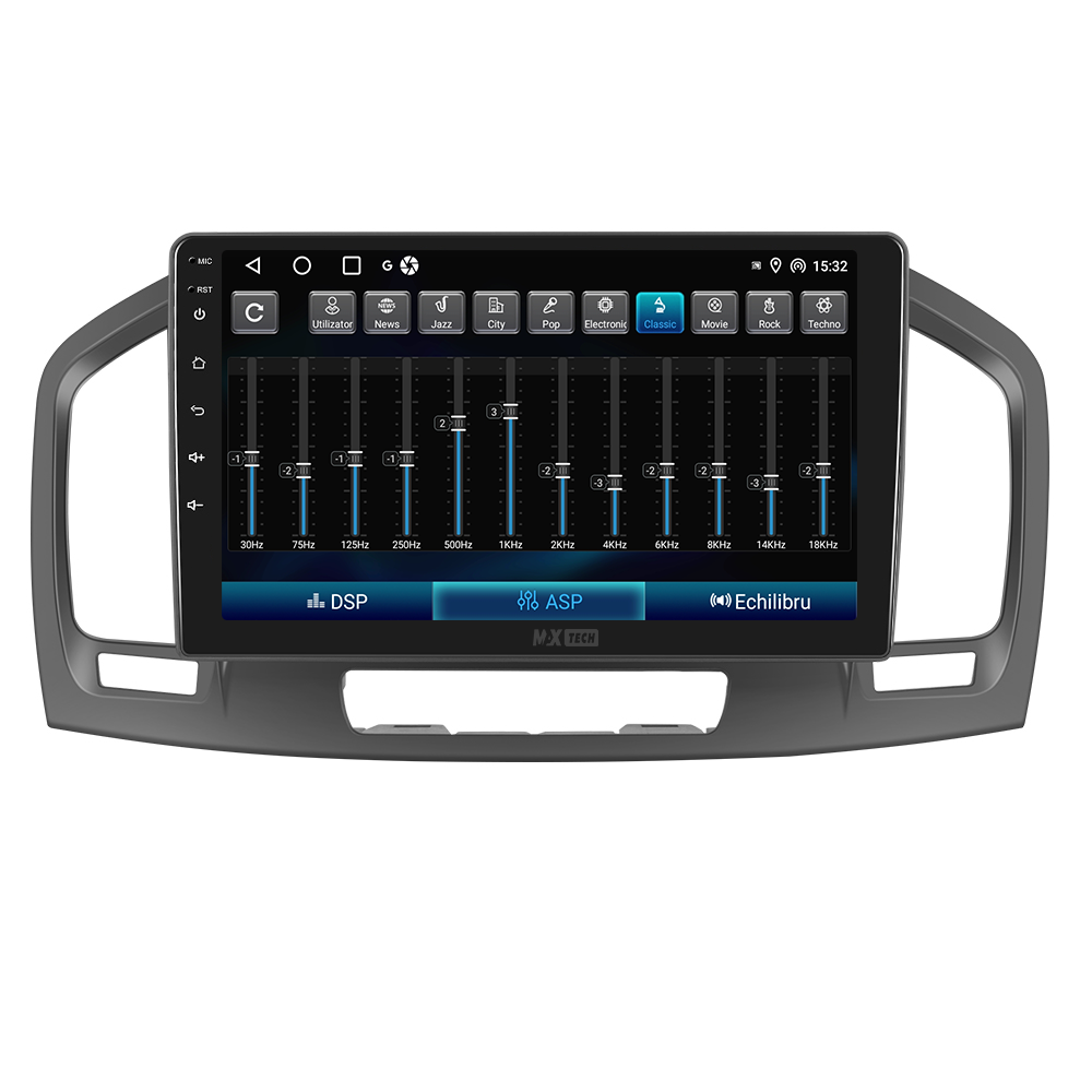Sistemul include radio RDS cu afisare post si melodie, comutare automata pe frecventa cea mai buna si procesare audio DSP cu egalizator si filtru activ pentru sunet clar, echilibrat si personalizabil.