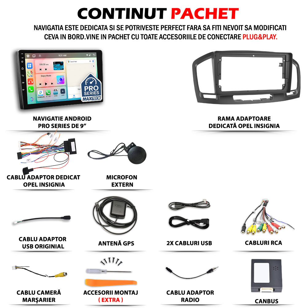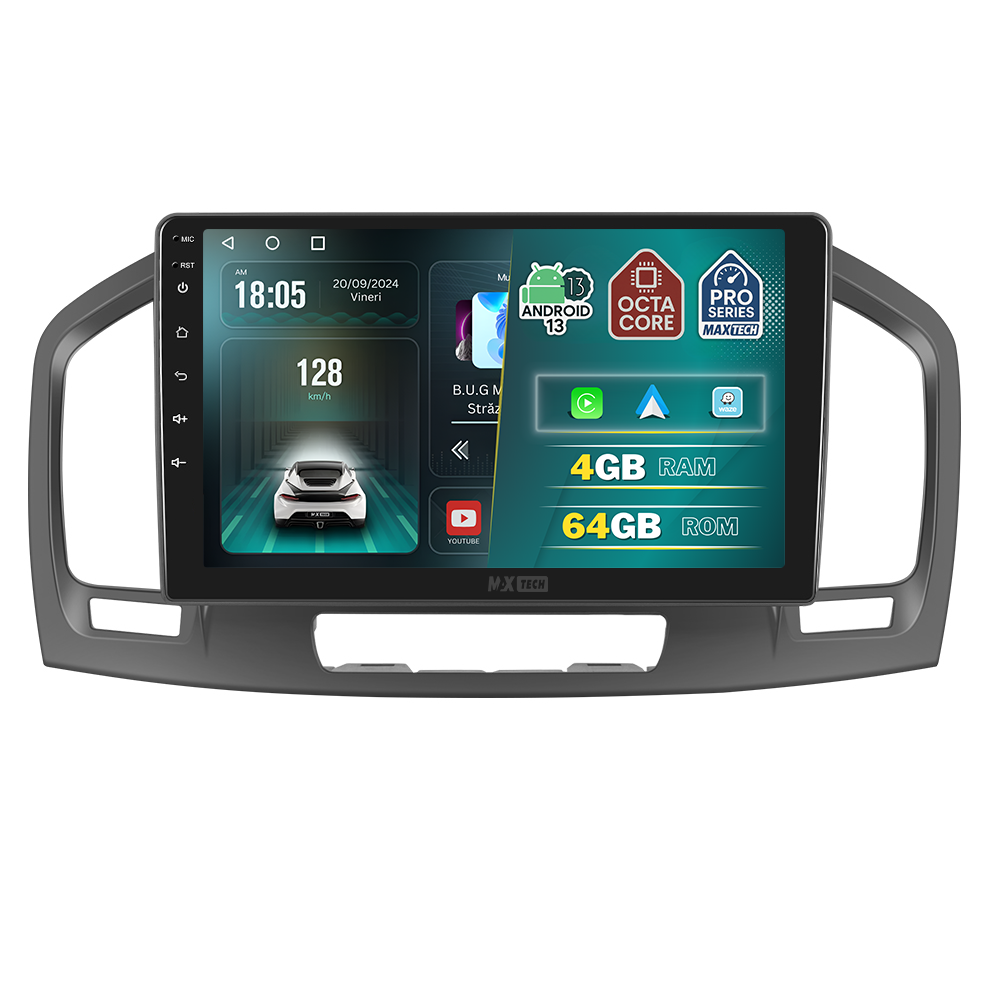 Navigatie Opel Insignia A 2008-2017 dedicata, MaxTech® PRO SERIES, 4 GB Ram 64 GB Rom OctaCore, Carplay & Android auto, Ecran 9 ” HD Touch, GPS, Wifi, Bluetooth, Radio, USB, EQ, DSP, Waze