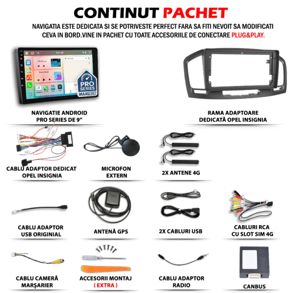 Navigatie Opel Insignia A 2008-2017 dedicata, MaxTech® PRO SERIES, 8 GB Ram 128 GB Rom OctaCore, Carplay & Android auto, Ecran 9” HD Touch, SIM 4G, GPS, Wifi, Bluetooth, Radio, EQ, Waze, Youtube