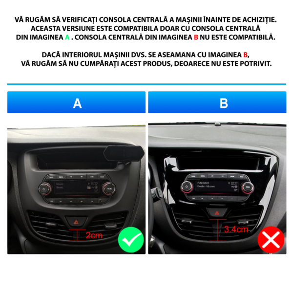 - Desi aceste sisteme sunt concepute pentru instalare de tip „Plug & Play”, in cazuri exceptionale, particularitatile specifice fiecarui model auto pot impune o atentie suplimentara in ceea ce priveste conectica si integrarea cu sistemele originale ale vehicululu ( Camere 360 grade, Senzori, optiuni extra …) . ( Daca este cazul, anumite atentionari vor fi evidentiate in imaginile produsului.)