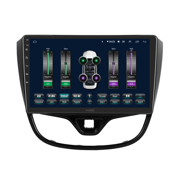 Sistem audio cu suport AM/FM/RDS, transmisie muzica online prin FM. Include equalizator (EQ) pentru ajustare fina a sunetului si filtru activ (Crossover) pentru directionarea frecventelor catre difuzoare dedicate (bass, inalte etc.).
