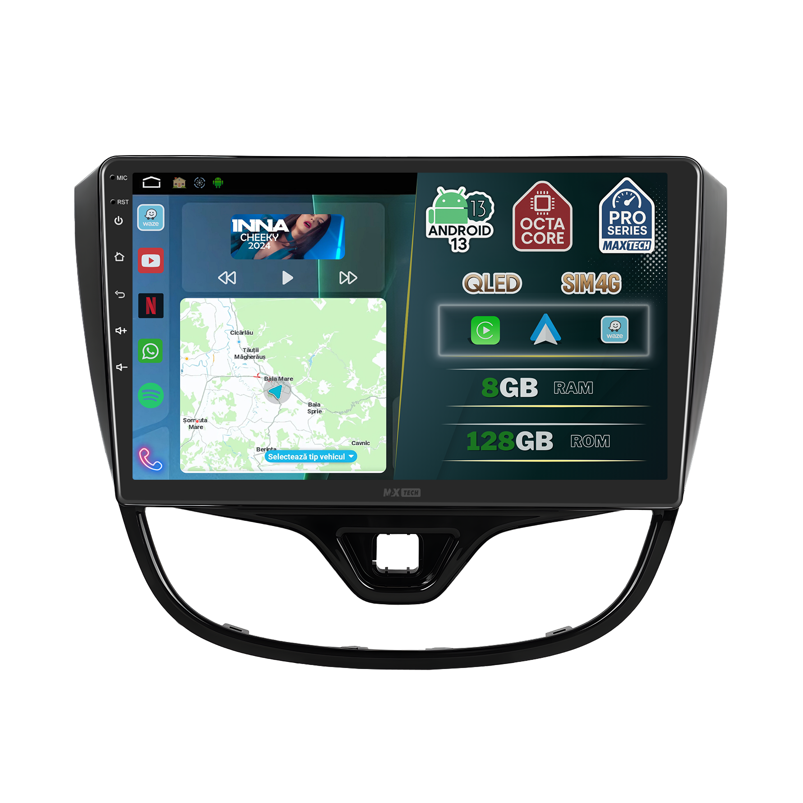 Navigatie Opel Karl facelift (2017-2020) dedicata, MaxTech® PRO SERIES, 8 GB Ram 128 GB Rom OctaCore, Carplay & Android auto, Ecran 10” HD Touch, SIM 4G, GPS, Wifi, Bluetooth, Radio, EQ, Waze