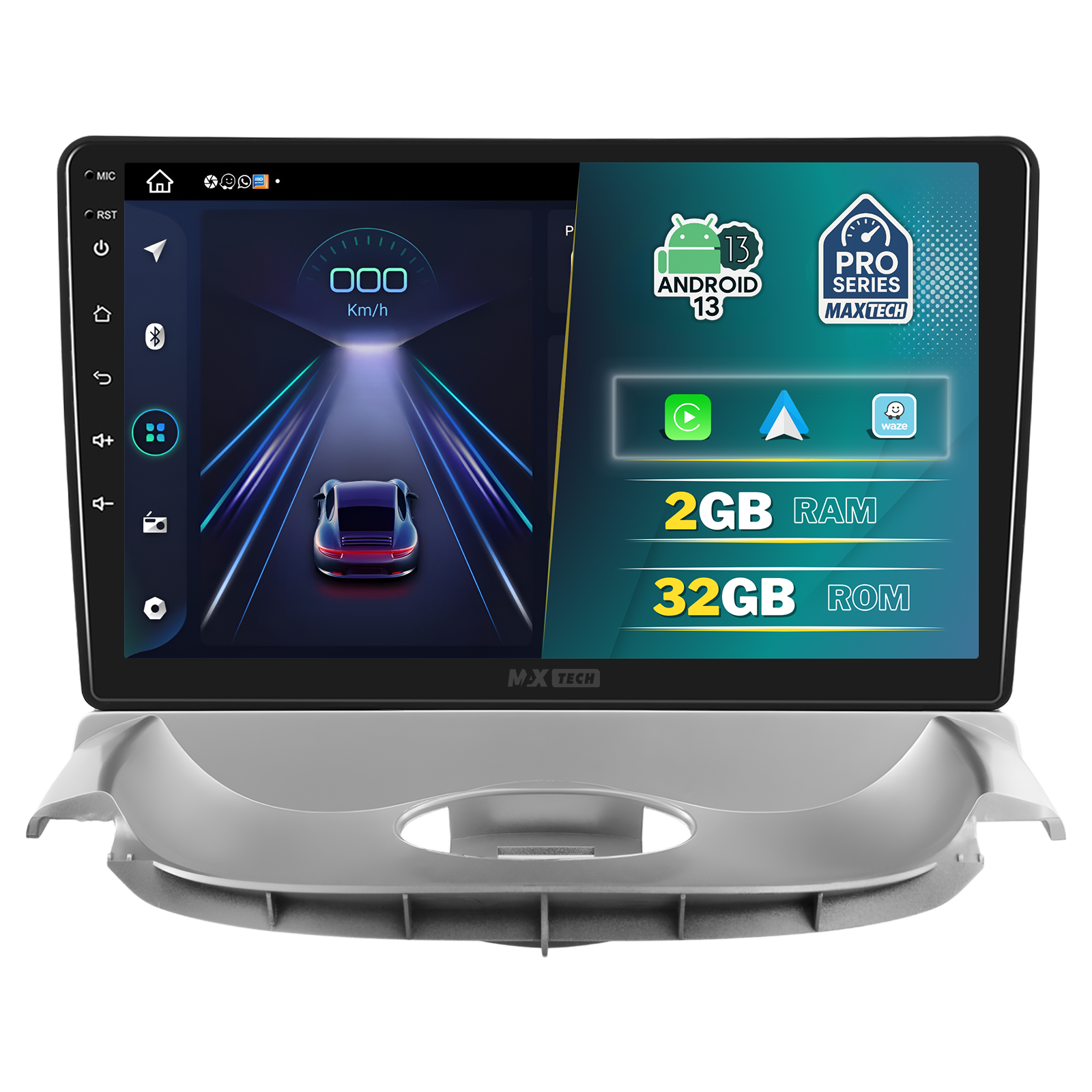 Sistemul MaxTech ProSeries este echipat cu un procesor Quad-Core, 2GB RAM si 32GB stocare, pentru multitasking rapid. Ecranul IPS HD de 1280×720 ofera culori reale si vizibilitate excelenta din orice unghi, cu design modern 2.5D.