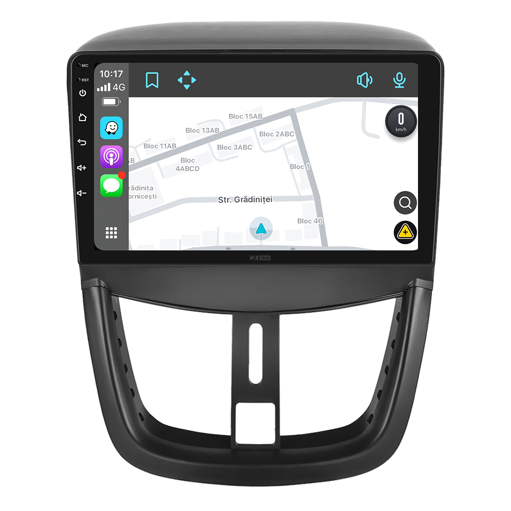 Navigatie Peugeot 207 (2009-2013) dedicata, MaxTech® PRO SERIES, 4 GB Ram 64 GB Rom OctaCore, Carplay & Android auto, Ecran 10 ” HD Touch, GPS, Wifi, Bluetooth, Radio, USB, EQ, Waze