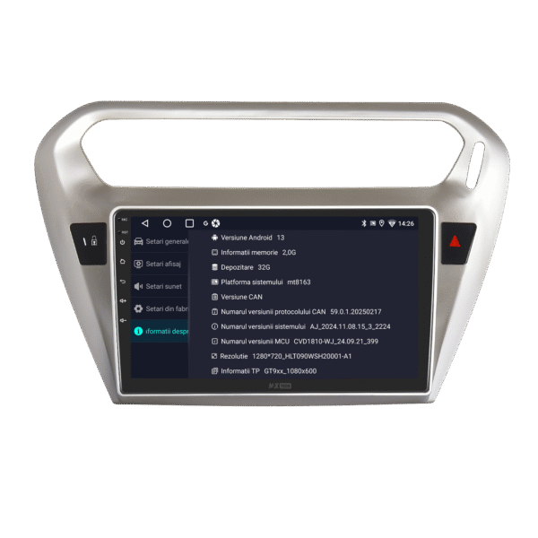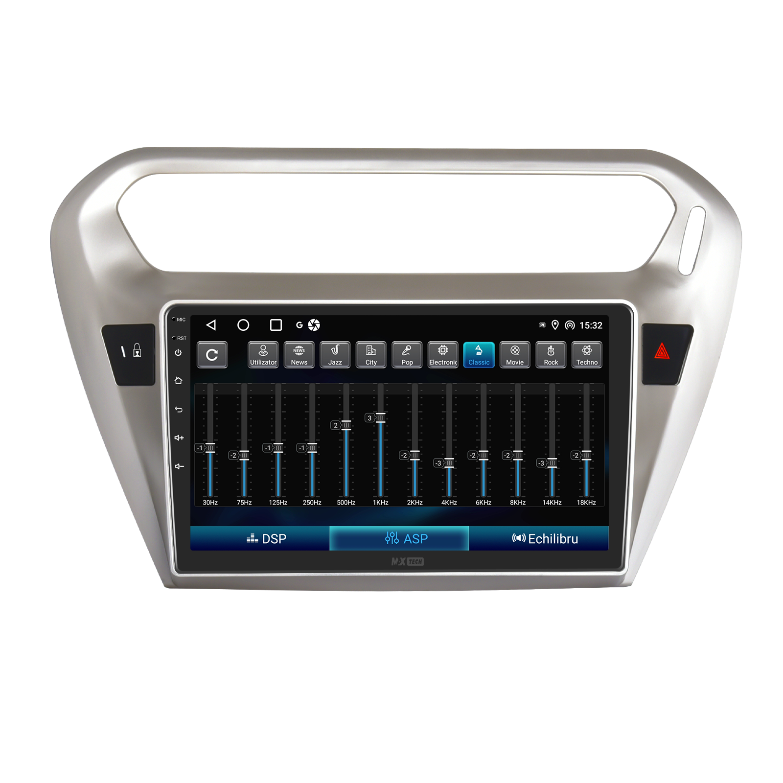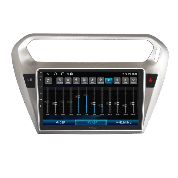 Sistemul include radio RDS cu afisare post si melodie, comutare automata pe frecventa cea mai buna si procesare audio DSP cu egalizator si filtru activ pentru sunet clar, echilibrat si personalizabil.