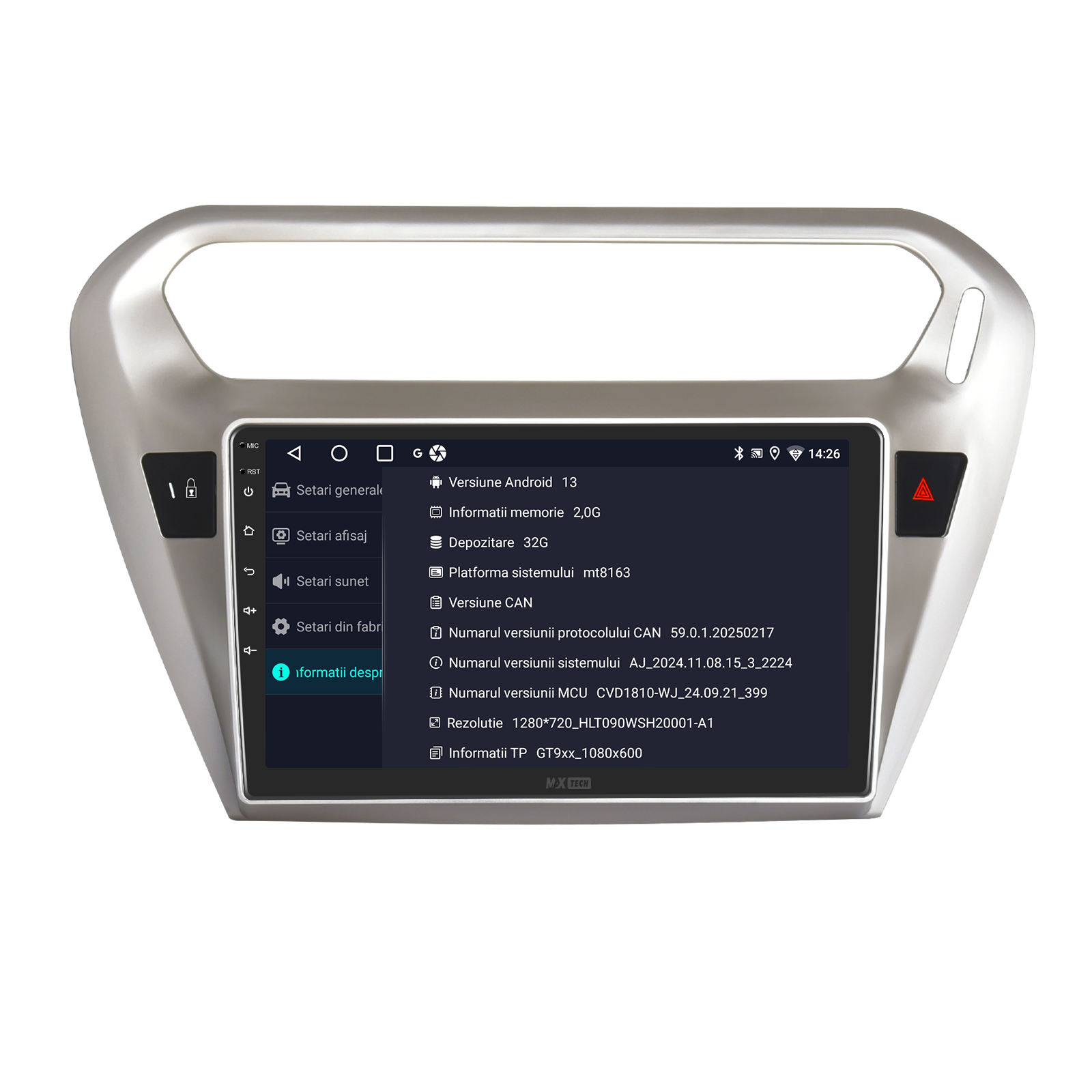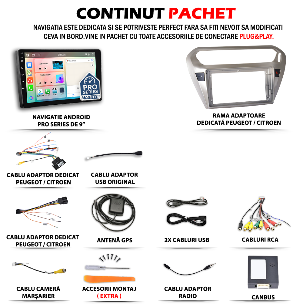 Navigatie Peugeot 301 / Citroen C-Elysee ( 2012 – 2016 ) dedicata, MaxTech® PRO SERIES, 2 GB Ram 32 GB Rom, Carplay & Android auto, Ecran 9 ” HD Touch, GPS, Wifi, Bluetooth, USB, Waze, Youtube