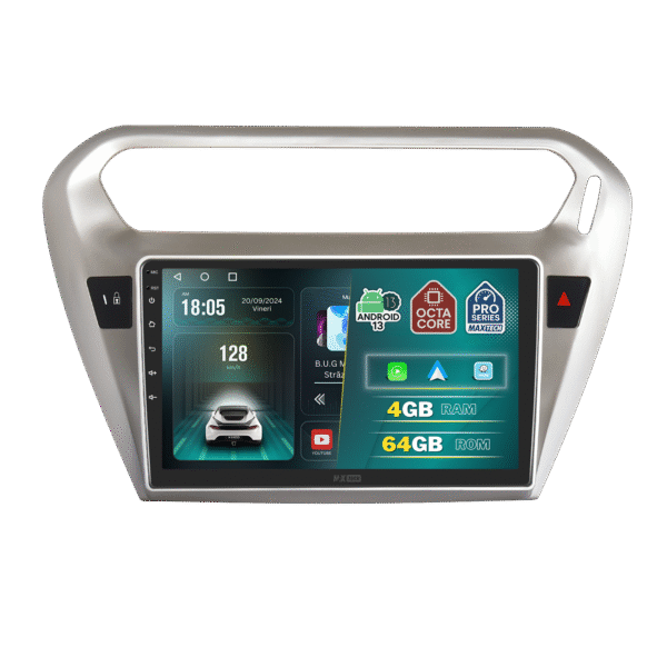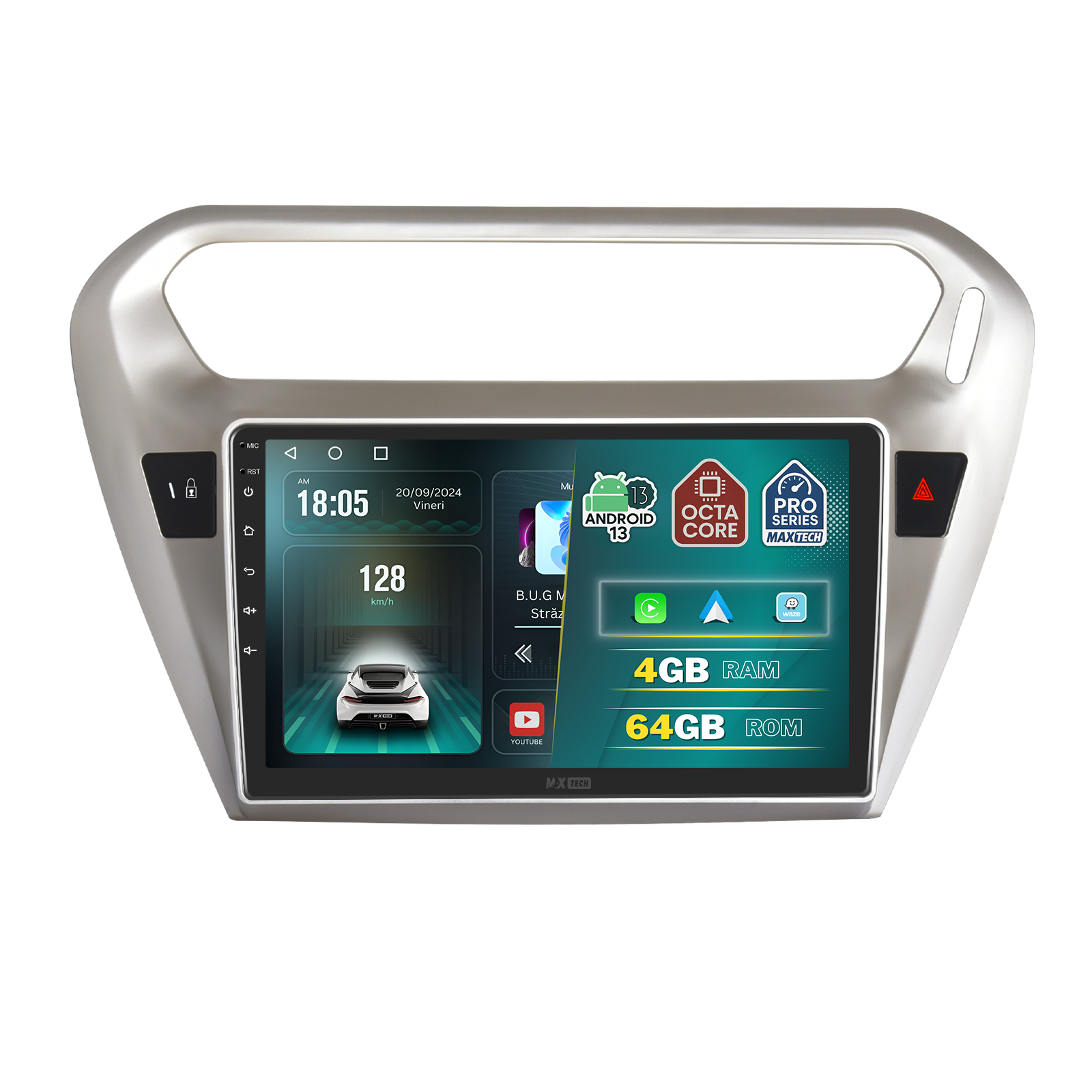 Navigatie Peugeot 301 / Citroen C-Elysee (2012-2016) dedicata, MaxTech® PRO SERIES, 4 GB Ram 64 GB Rom OctaCore, Carplay & Android auto, Ecran 9 ” HD Touch, GPS, Wifi, Bluetooth, Radio, USB, Waze