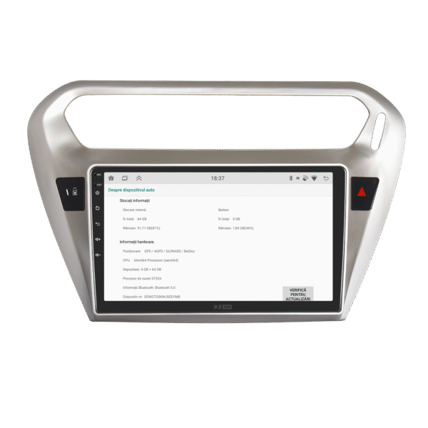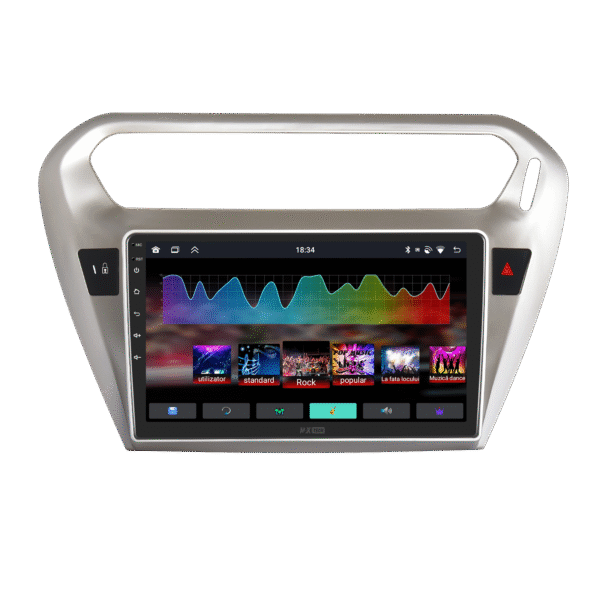 Sistemul include radio RDS cu afisare post si melodie, comutare automata pe frecventa cea mai buna si procesare audio DSP cu egalizator si filtru activ pentru sunet clar, echilibrat si personalizabil.